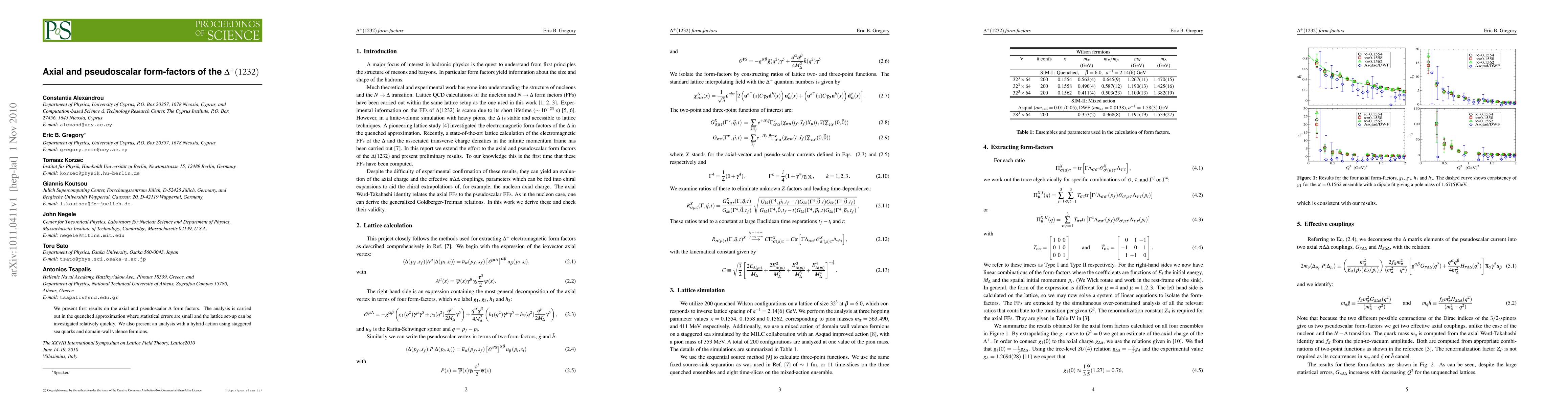 This paper reports initial findings on the axial and pseudoscalar form factors of the Delta^+(1232) particle, utilizing a quenched approximation and a hybrid action with staggered sea quarks and domain-wall valence fermions for lattice QCD analysis. The results provide insights into the Delta's structure and interactions.