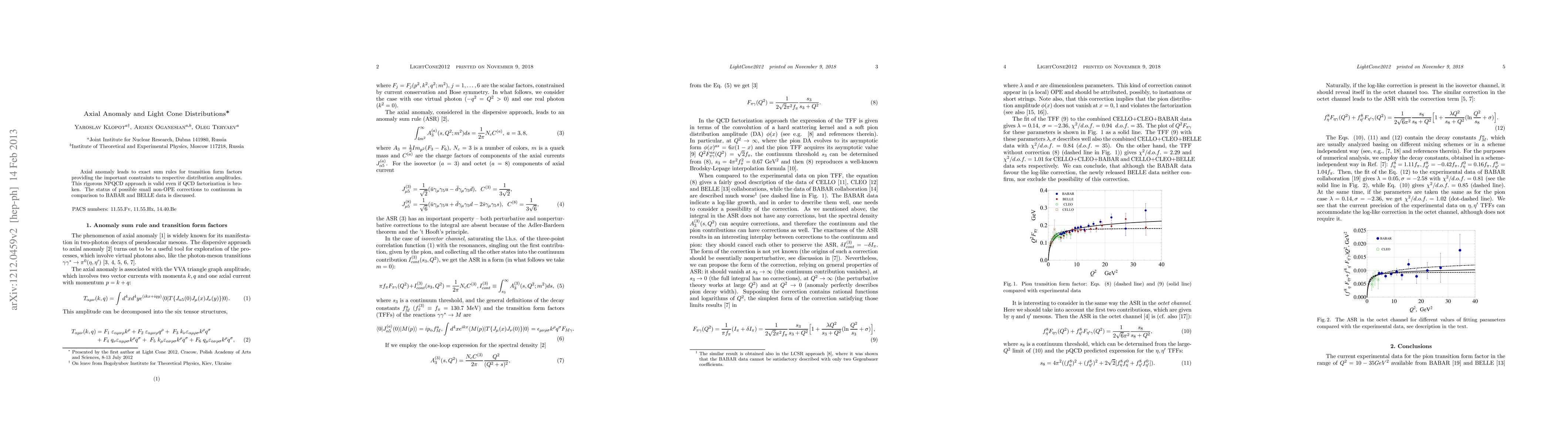Axial anomaly leads to exact sum rules for transition form factors providing the important constraints to respective distribution amplitudes. This rigorous NPQCD approach is valid even if QCD factorization is broken. The status of possible small non-OPE corrections to continuum in comparison to BABAR and BELLE data is discussed.