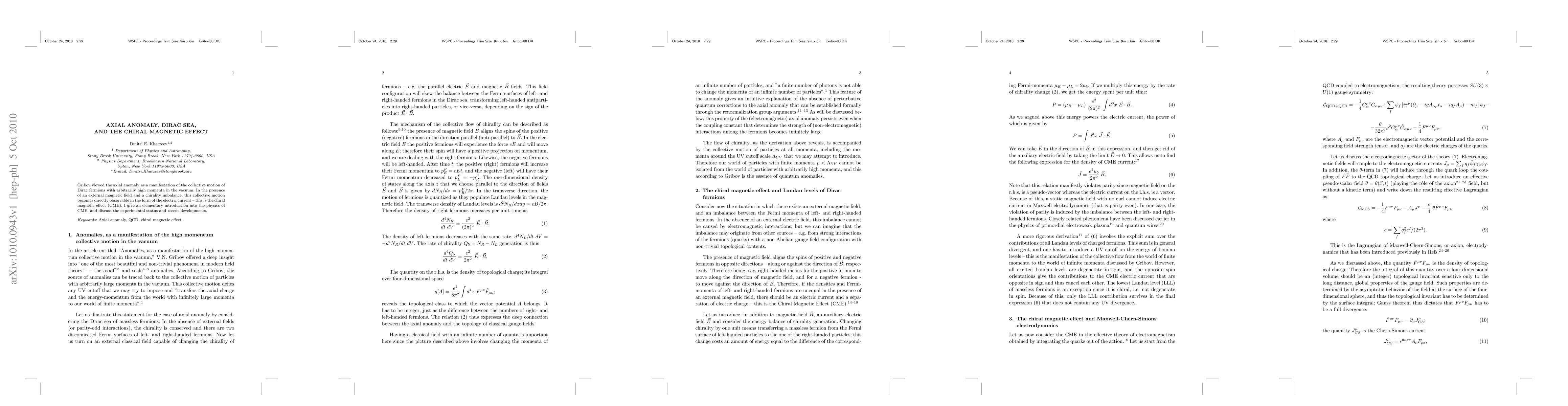 The paper provides a clear and concise introduction to the chiral magnetic effect, linking it to axial anomaly and Dirac sea, and discusses its relevance in heavy-ion collision scenarios.