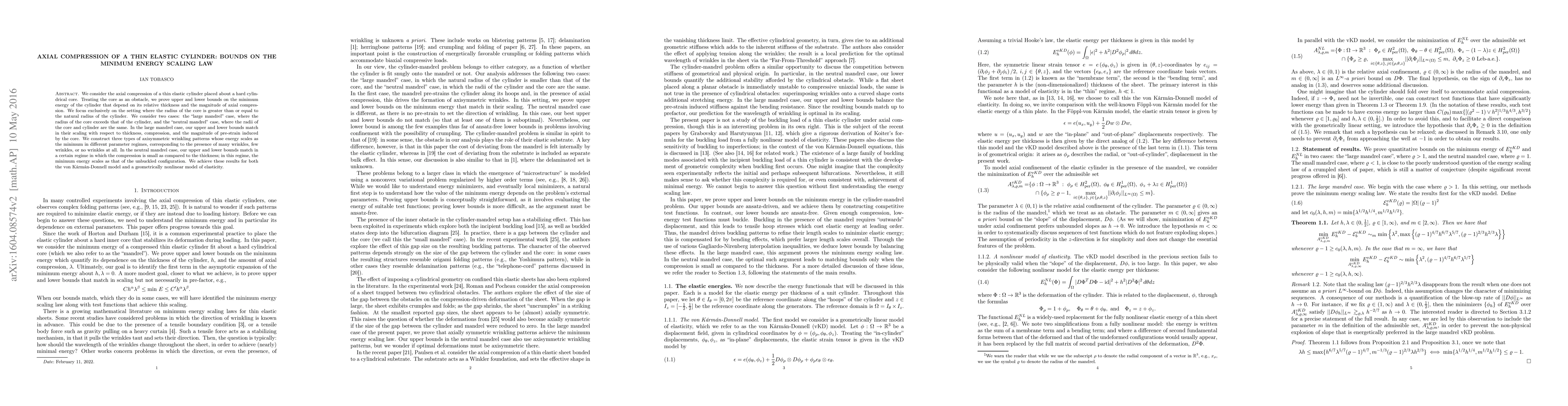 The paper presents a rigorous mathematical framework for bounding the minimum energy of thin elastic cylinders under axial compression, utilizing both analytical proofs and numerical constructions of wrinkling patterns.