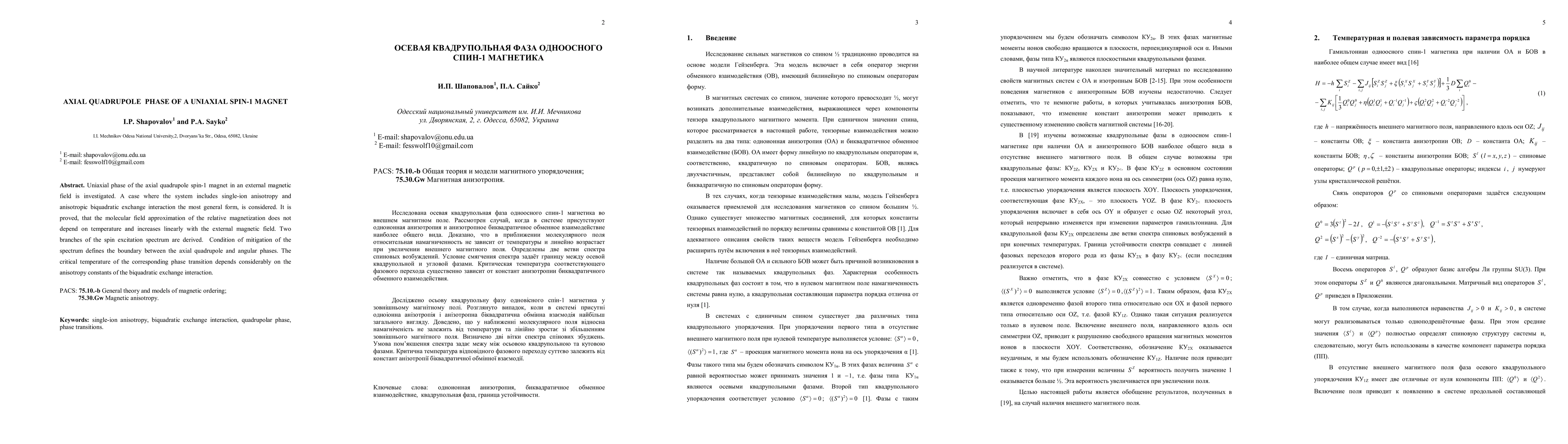 Uniaxial phase of the axial quadrupole spin-1 magnet in an external magnetic field is investigated. A case where the system includes single-ion anisotropy and anisotropic biquadratic exchange interaction the most general form, is considered. It is proved, that the molecular field approximation of the relative magnetization does not depend on temperature and increases linearly with the external magnetic field. Two branches of the spin excitation spectrum are derived. Condition of mitigation of the spectrum defines the boundary between the axial quadrupole and angular phases. The critical temperature of the corresponding phase transition depends considerably on the anisotropy constants of the biquadratic exchange interaction.