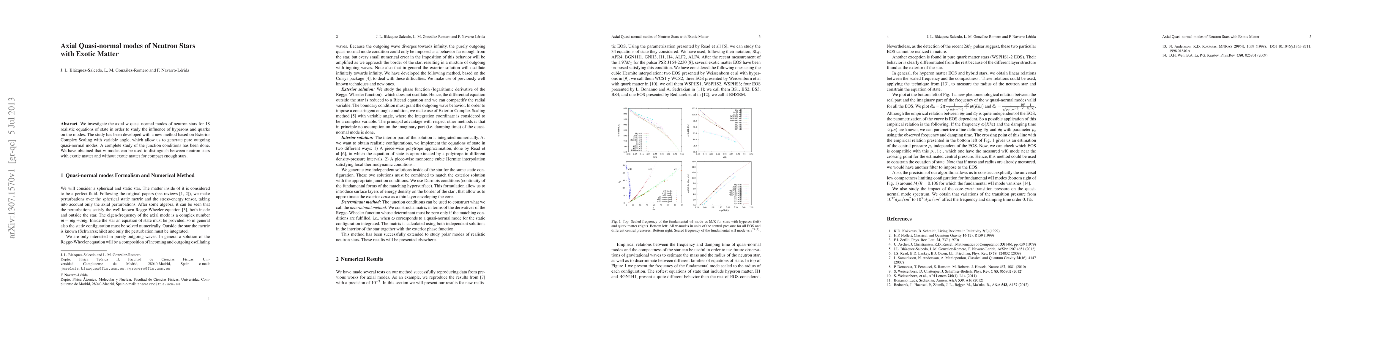 This research explores axial quasi-normal modes of neutron stars under 18 realistic equations of state, focusing on the impact of hyperons and quarks. Utilizing a novel Exterior Complex Scaling method, the study finds that w-modes can differentiate neutron stars with exotic matter from those without, especially in sufficiently compact stars.