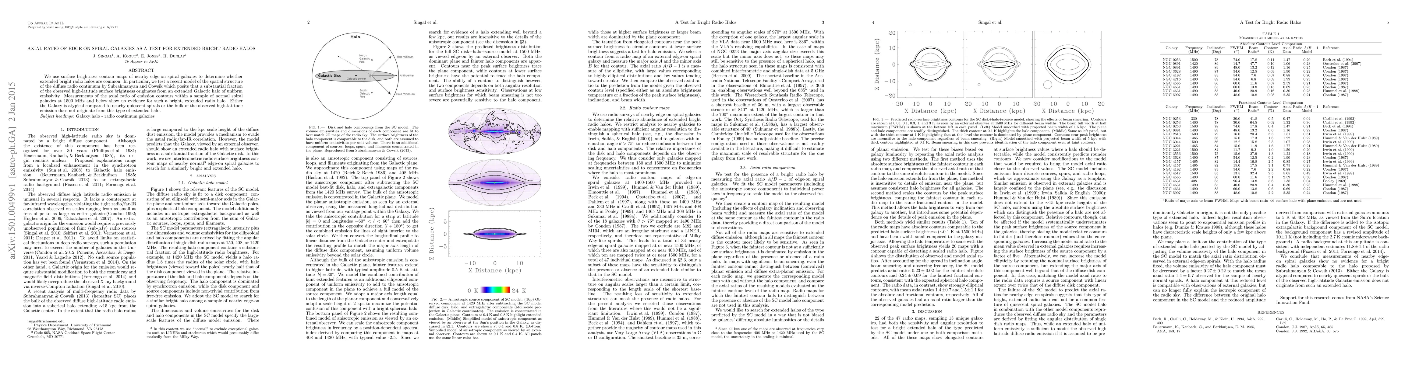 We use surface brightness contour maps of nearby edge-on spiral galaxies to determine whether extended bright radio halos are common. In particular, we test a recent model of the spatial structure of the diffuse radio continuum by Subrahmanyan and Cowsik which posits that a substantial fraction of the observed high-latitude surface brightness originates from an extended Galactic halo of uniform emissivity. Measurements of the axial ratio of emission contours within a sample of normal spiral galaxies at 1500 MHz and below show no evidence for such a bright, extended radio halo. Either the Galaxy is atypical compared to nearby quiescent spirals or the bulk of the observed high-latitude emission does not originate from this type of extended halo.