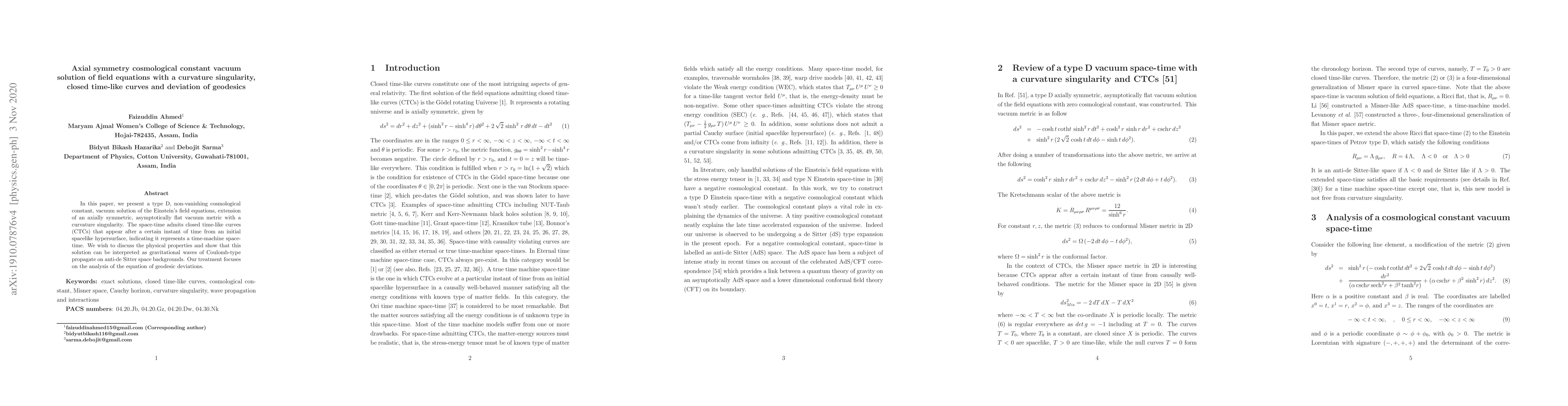 In this paper, we present a type D, non-vanishing cosmological constant, vacuum solution of the Einstein's field equations, extension of an axially symmetric, asymptotically flat vacuum metric with a curvature singularity. The space-time admits closed time-like curves (CTCs) that appear after a certain instant of time from an initial spacelike hypersurface, indicating it represents a time-machine space-time. We wish to discuss the physical properties and show that this solution can be interpreted as gravitational waves of Coulomb-type propagate on anti-de Sitter space backgrounds. Our treatment focuses on the analysis of the equation of geodesic deviation.