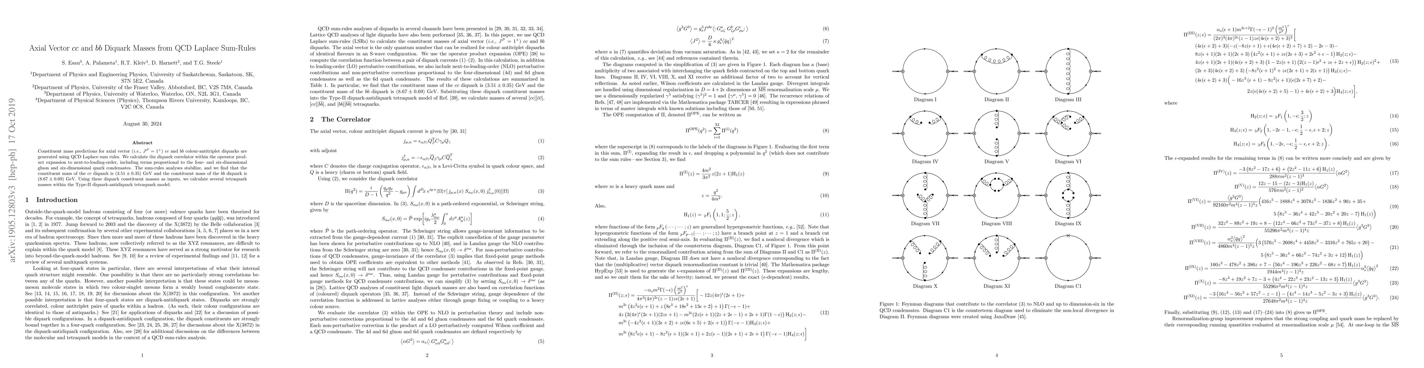 Constituent mass predictions for axial vector (i.e., $J^P=1^+$) $cc$ and $bb$ colour antitriplet diquarks are generated using QCD Laplace sum-rules. We calculate the diquark correlator within the operator product expansion to NLO, including terms proportional to the four- and six-dimensional gluon and six-dimensional quark condensates. The sum-rules analyses stabilize, and we find that the mass of the $cc$ diquark is 3.51~GeV and the mass of the $bb$ diquark is 8.67~GeV. Using these diquark masses as inputs, we calculate several tetraquark masses within the Type-II diquark-antidiquark tetraquark model.