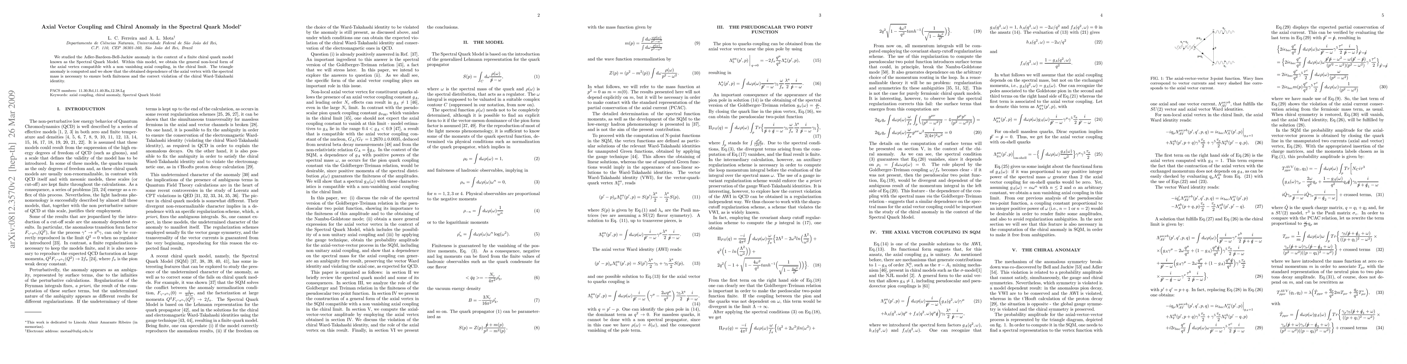 This research explores the Adler-Bardeen-Bell-Jackiw anomaly within the Spectral Quark Model, deriving a non-local axial vertex form that maintains finiteness and accurately violates the chiral Ward-Takahashi identity by incorporating the spectral mass dependence.
