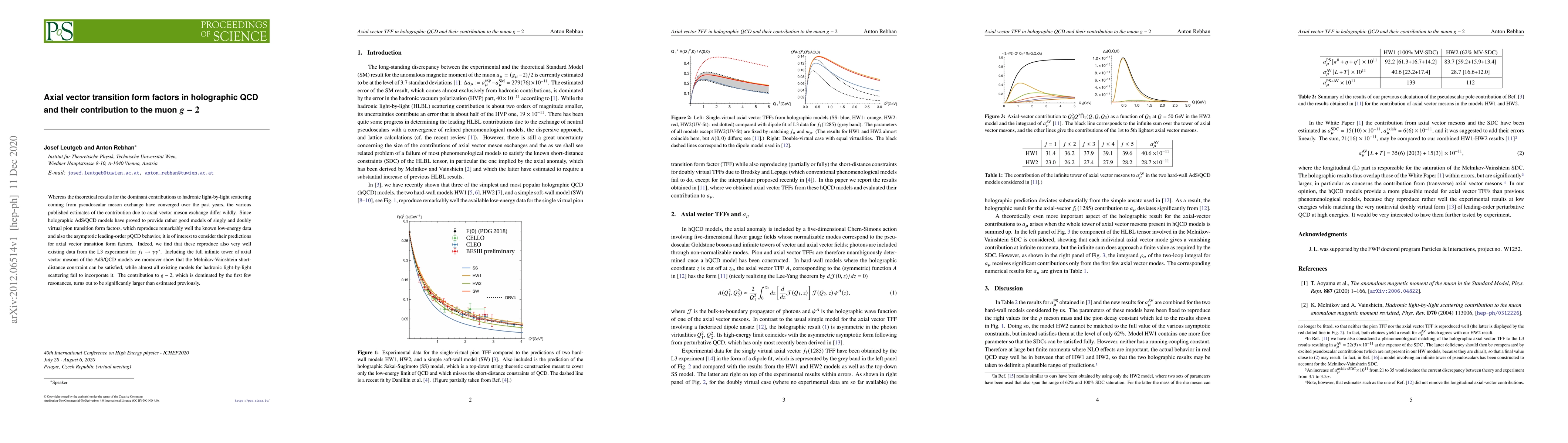 Researchers used holographic QCD models to predict axial vector transition form factors, which significantly improve previous estimates for the muon g-2, a key experiment in particle physics.