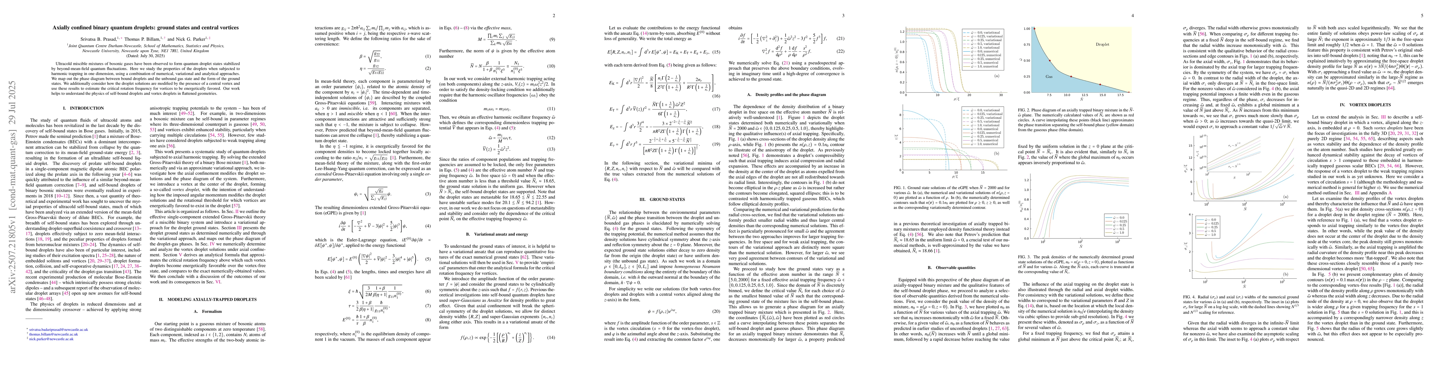 The paper presents a comprehensive analysis of axially confined binary quantum droplets, providing a detailed phase diagram and ground state solutions, as well as insights into vortex droplets.