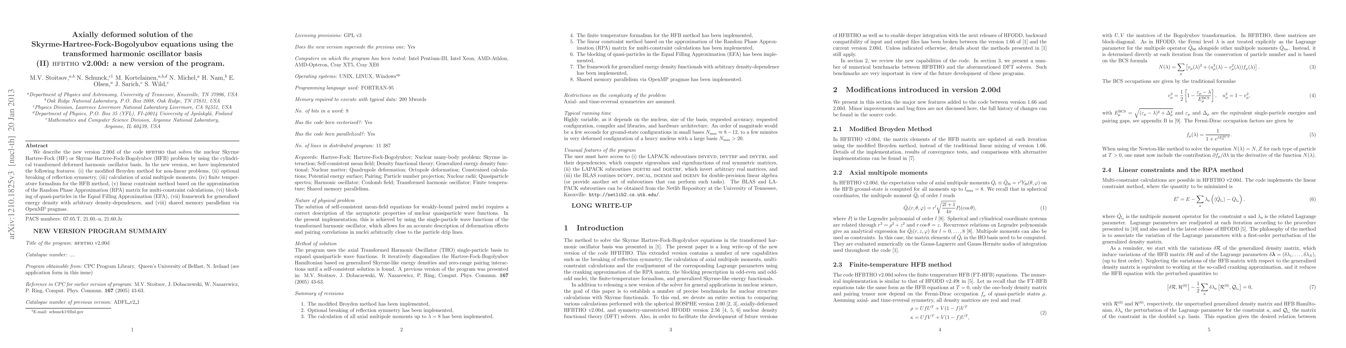 This paper introduces version 2.00d of the HFBTHO code, which solves Skyrme Hartree-Fock or Skyrme Hartree-Fock-Bogolyubov equations using a deformed harmonic oscillator basis, featuring enhanced capabilities including a modified Broyden method, reflection symmetry breaking, and shared memory parallelism.
