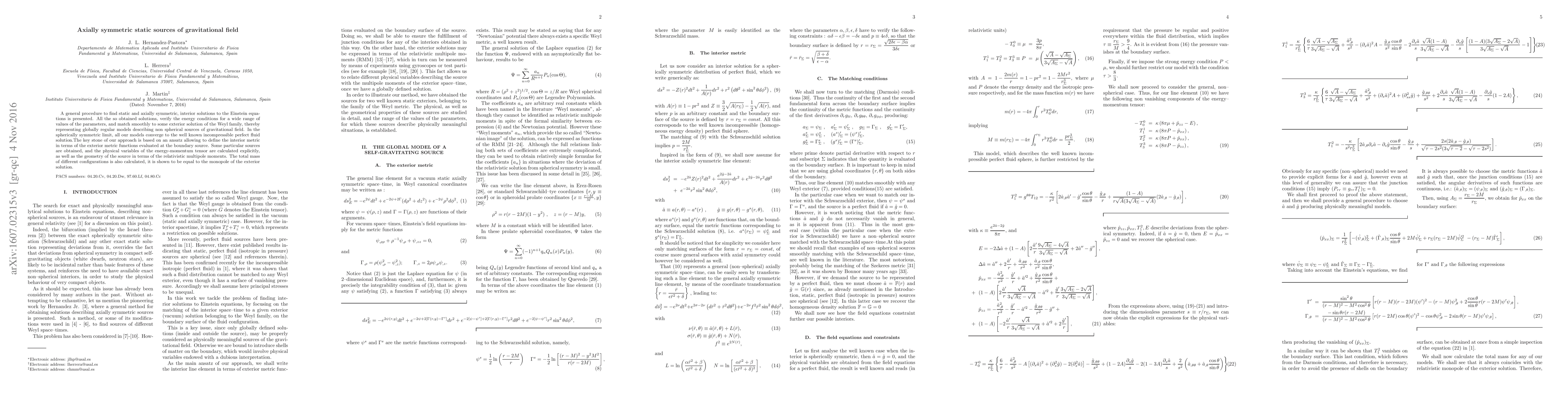This paper presents a method to derive static and axially symmetric interior solutions to Einstein's equations, ensuring they meet energy conditions and smoothly match to exterior Weyl solutions. The approach uses an ansatz relating interior and exterior metrics, leading to globally regular models for non-spherical gravitational sources.
