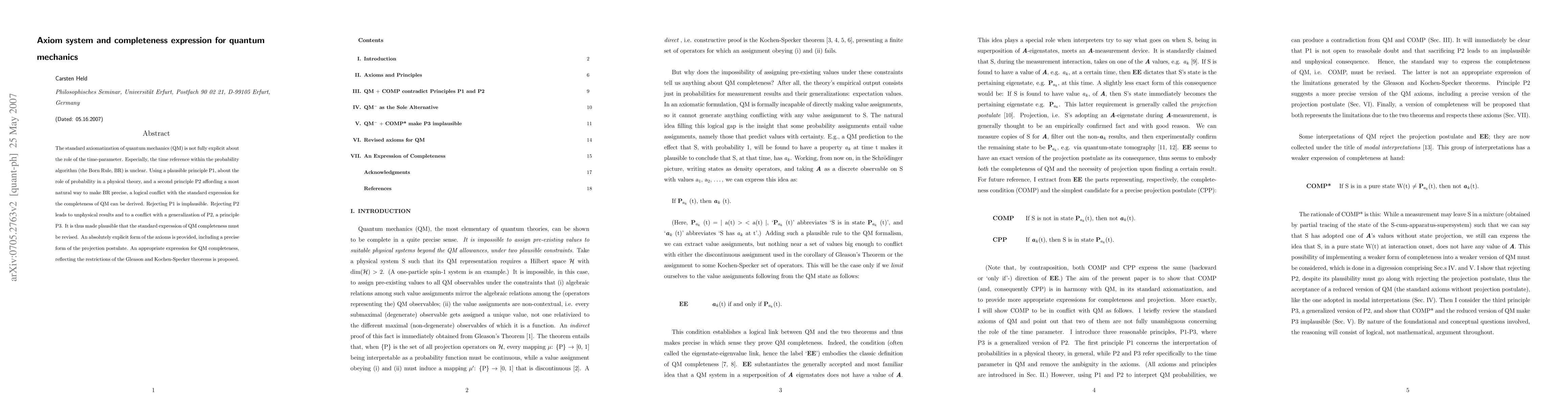 This paper argues that the standard axiomatization of quantum mechanics lacks clarity regarding the time-parameter, especially in the Born Rule's probability algorithm. It proposes new principles that reveal a logical conflict with the current completeness expression, suggesting a revision is necessary to align with the Gleason and Kochen-Specker theorems.