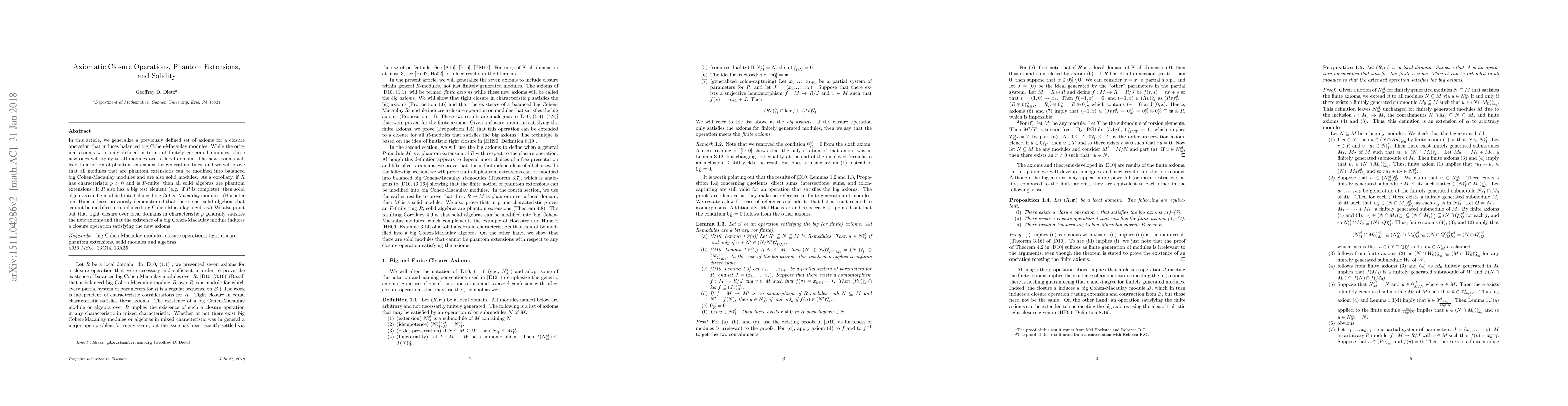 This paper generalizes axioms for closure operations to apply to all modules over local domains, introducing phantom extensions and proving that all such modules are solid and can be transformed into balanced big Cohen-Macaulay modules under certain conditions, particularly in $F$-finite domains with big test elements.