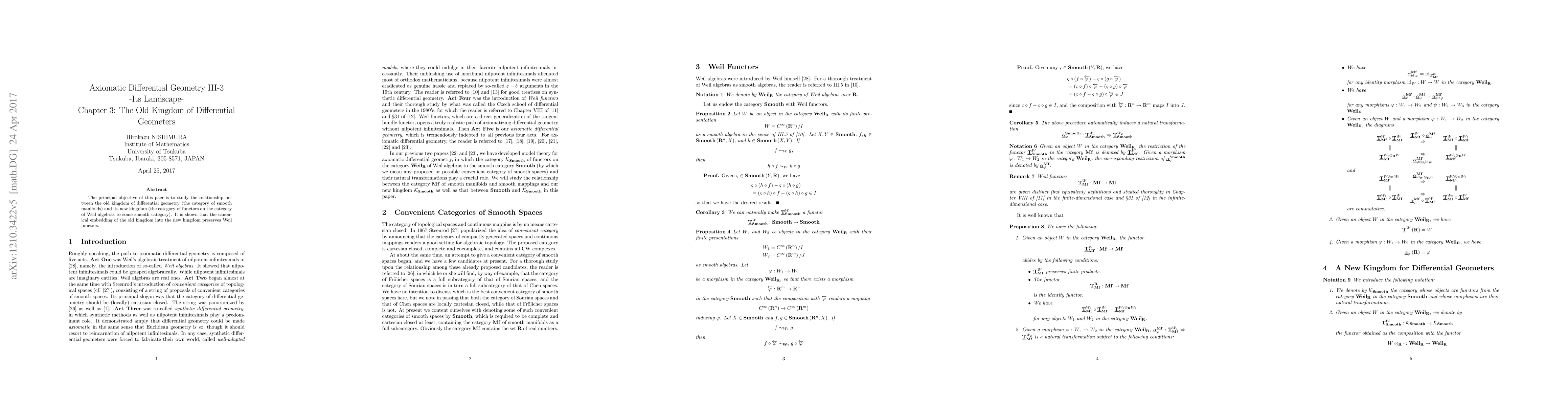 The principal objective in this paer is to study the relationship between the old kingdom of differential geometry (the category of smooth manifolds) and its new kingdom (the category of functors on the category of Weil algebras to some smooth category). It is shown that the canonical embedding of the old kingdom into the new kingdom preserves Weil functors.