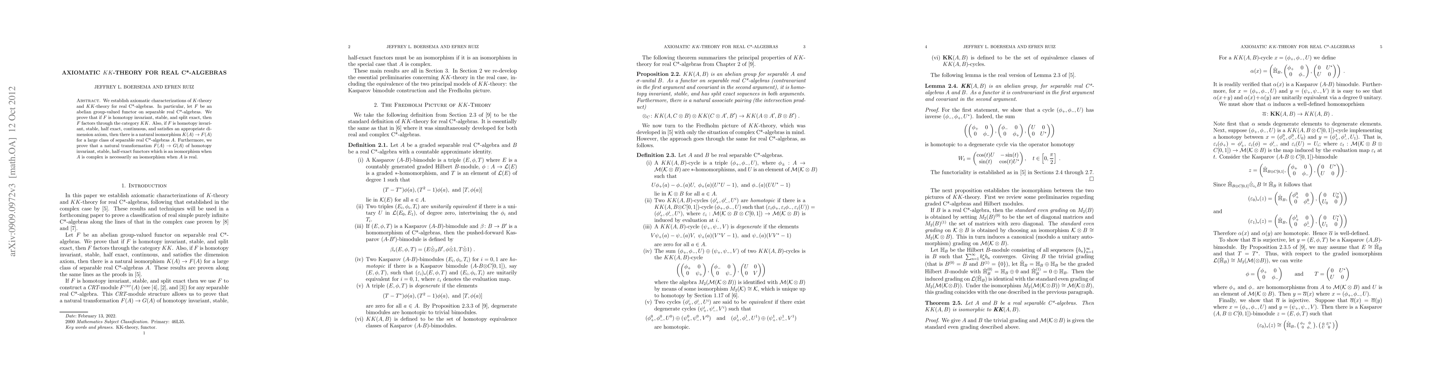This paper establishes axiomatic characterizations for $K$-theory and $KK$-theory in the context of real C*-algebras, showing that specific functors factor through $KK$ under certain conditions and proving natural isomorphisms for a broad class of separable real C*-algebras. It also demonstrates that natural transformations between such functors are isomorphisms for real algebras if they are for complex algebras.
