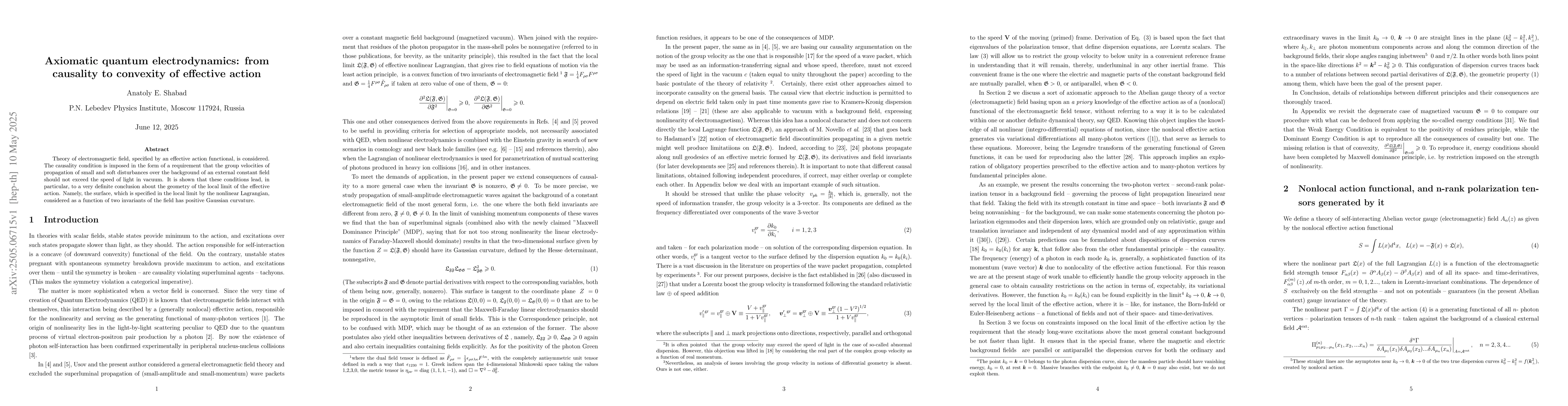 This paper develops axiomatic quantum electrodynamics by imposing causality conditions on an effective action functional, leading to a geometric conclusion about the local limit of the effective action: it has positive Gaussian curvature.