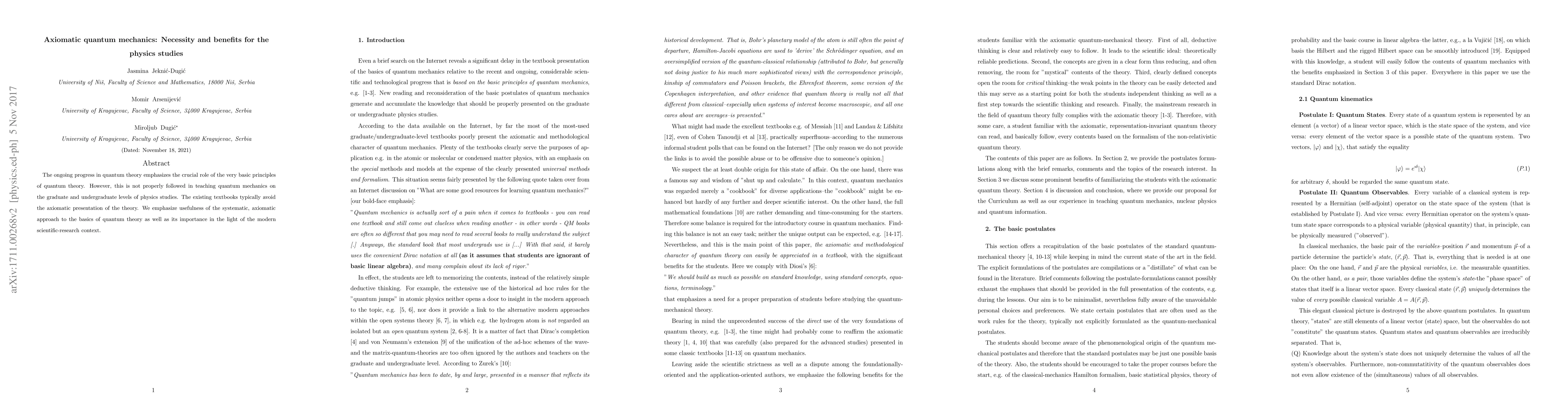 This paper argues for the necessity of teaching quantum mechanics through an axiomatic approach, highlighting its benefits for both graduate and undergraduate physics studies, and stressing its importance in the context of modern scientific research.