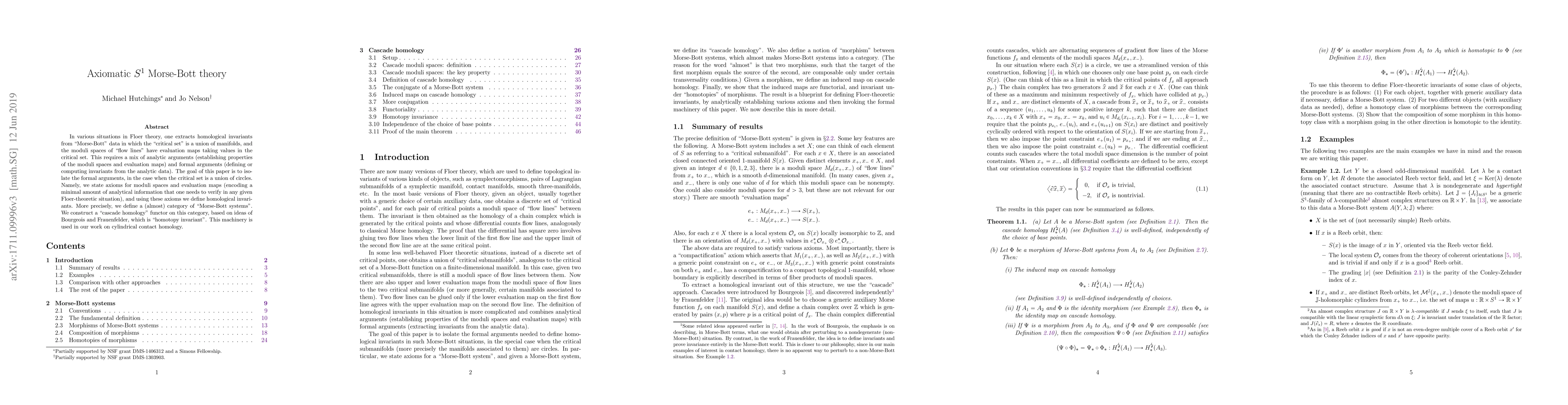 This paper develops axioms for Morse-Bott systems where the critical set is a union of circles, aiming to define homological invariants using minimal analytical verification. It constructs a homotopy invariant "cascade homology" functor and applies this to cylindrical contact homology.