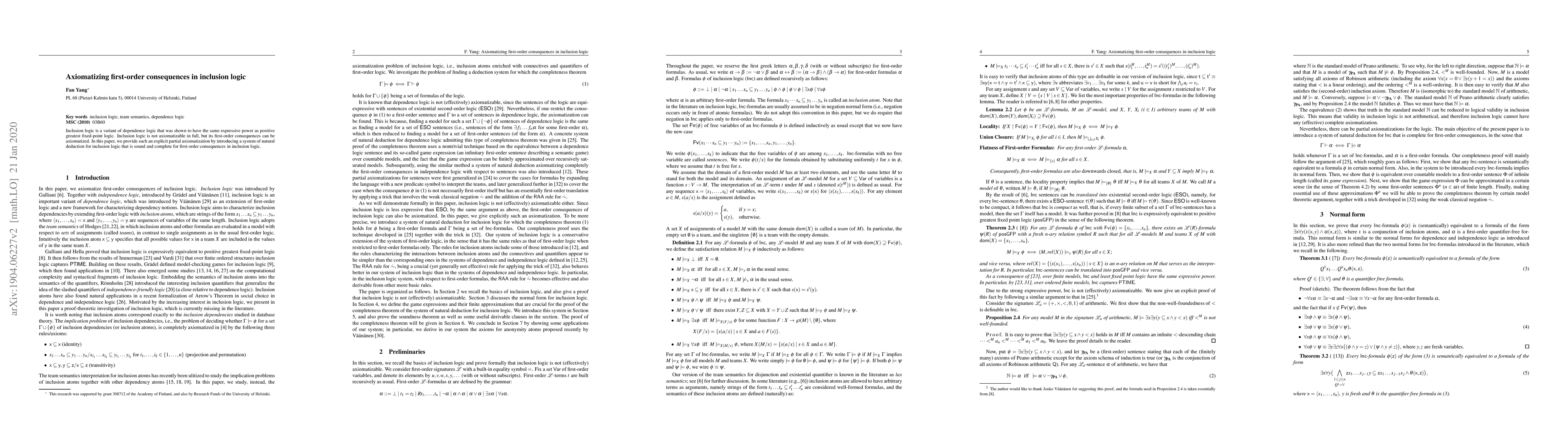 This paper presents a partial axiomatization for first-order consequences in inclusion logic, introducing a sound and complete natural deduction system for these consequences. The work builds on the expressive equivalence of inclusion logic to positive greatest fixed-point logic.