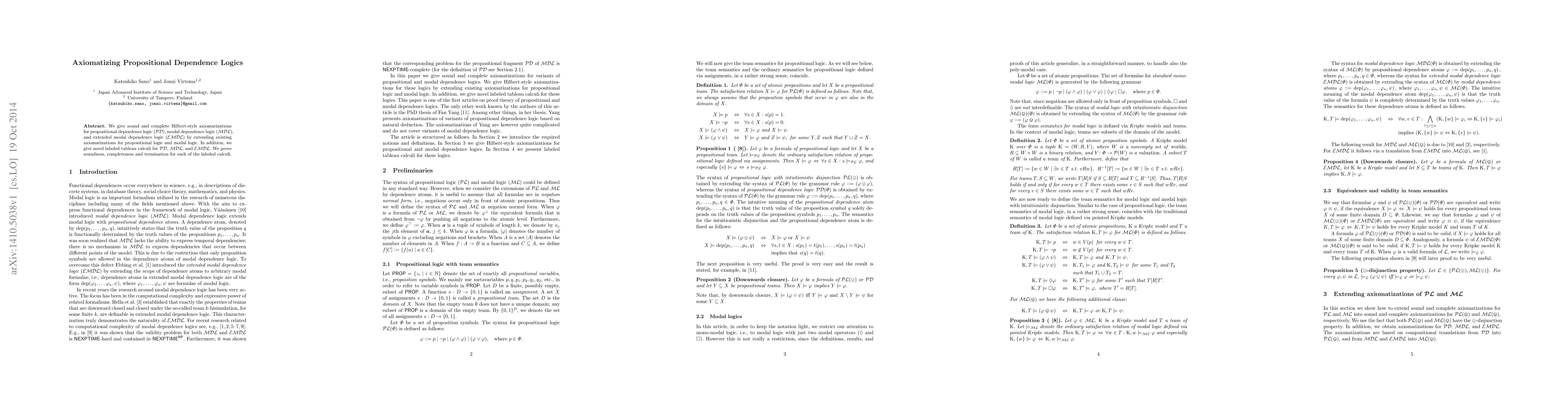 This paper presents sound and complete Hilbert-style axiomatizations for propositional dependence logic (PD), modal dependence logic (MDL), and extended modal dependence logic (EMDL), extending existing logics frameworks. It also introduces novel labeled tableau calculi for these logics, proving their soundness, completeness, and termination.
