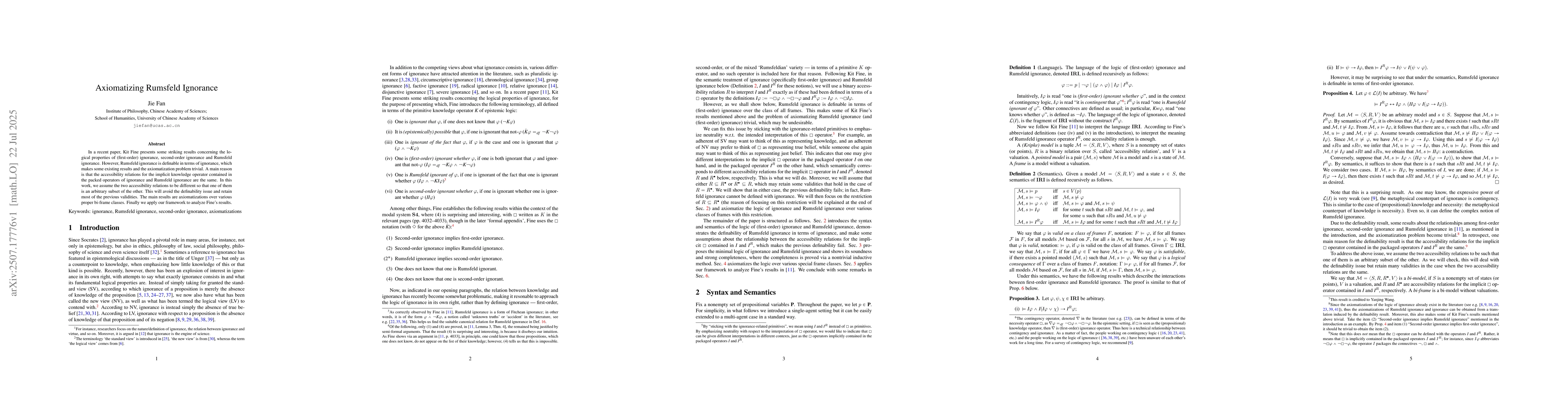 In a recent paper, Kit Fine presents some striking results concerning the logical properties of (first-order) ignorance, second-order ignorance and Rumsfeld ignorance. However, Rumsfeld ignorance is definable in terms of ignorance, which makes some existing results and the axiomatization problem trivial. A main reason is that the accessibility relations for the implicit knowledge operator contained in the packaged operators of ignorance and Rumsfeld ignorance are the same. In this work, we assume the two accessibility relations to be different so that one of them is an arbitrary subset of the other. This will avoid the definability issue and retain most of the previous validities. The main results are axiomatizations over various proper bi-frame classes. Finally we apply our framework to analyze Fine's results.