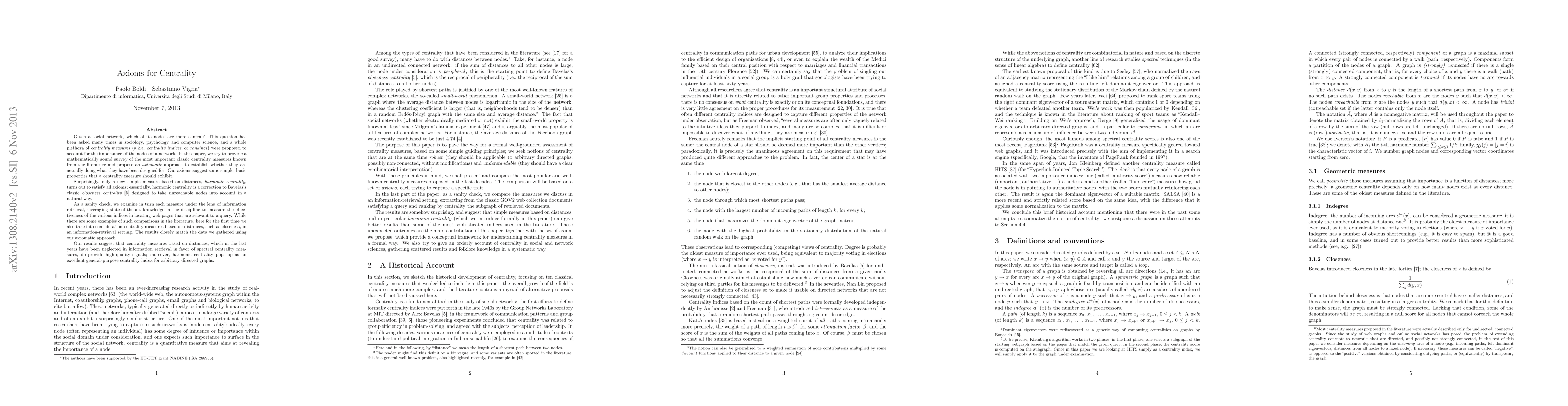 Researchers develop a new centrality measure called harmonic centrality that satisfies key mathematical axioms and outperforms existing measures in information retrieval, providing a more comprehensive understanding of node importance in social networks.