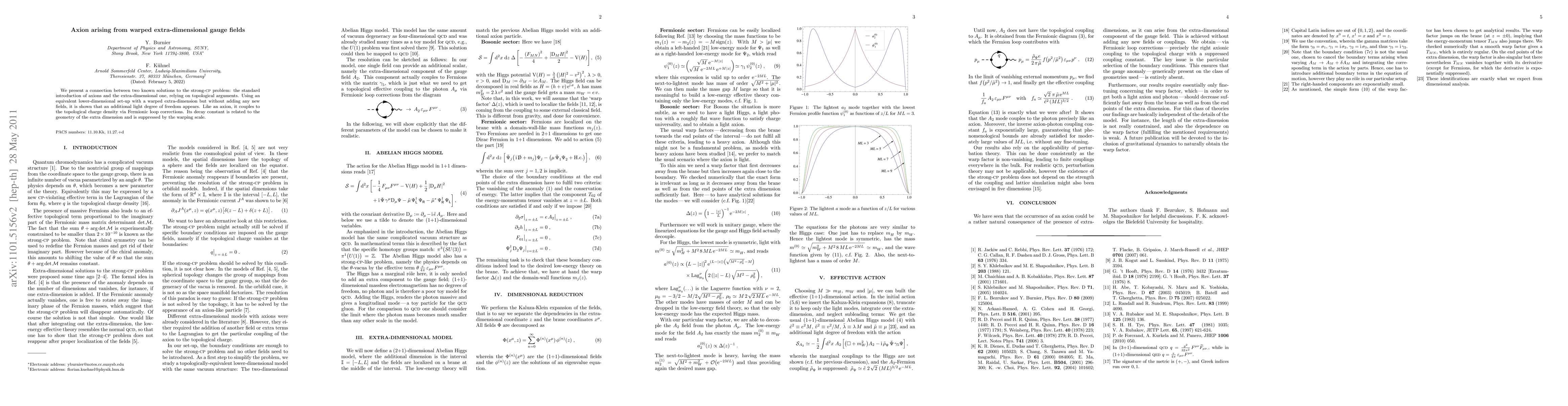 This paper connects the axion solution to the strong-CP problem with an extra-dimensional gauge field model, demonstrating that a light degree of freedom akin to an axion arises naturally from warped extra dimensions without introducing new fields. The axion-like coupling and decay constant are determined by the geometry and warping scale of the extra dimension.