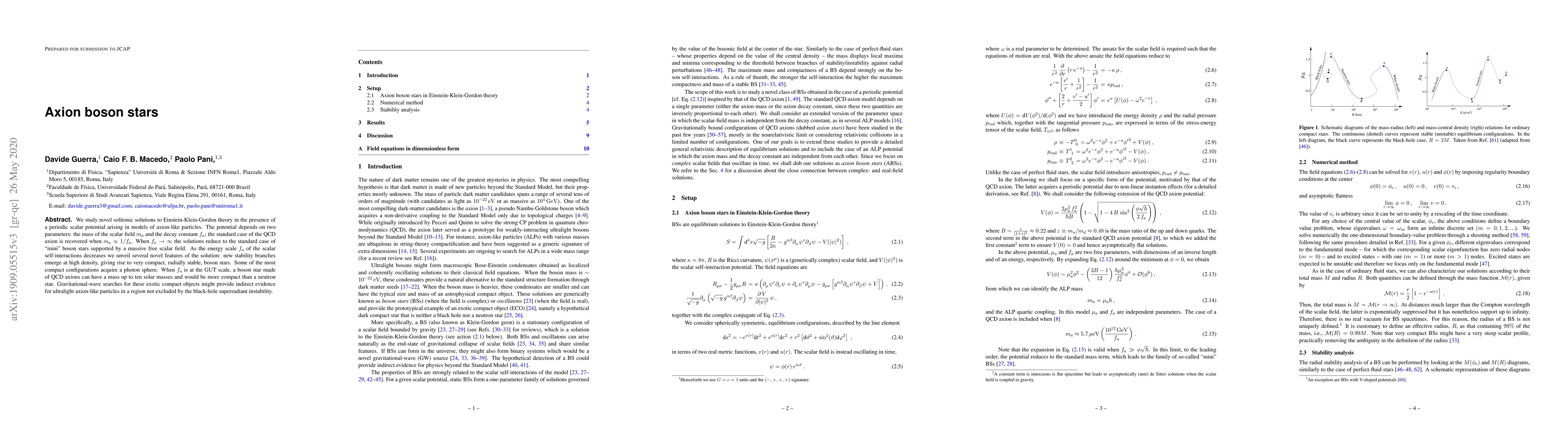 We study novel solitonic solutions to Einstein-Klein-Gordon theory in the presence of a periodic scalar potential arising in models of axion-like particles. The potential depends on two parameters: the mass of the scalar field $m_a$ and the decay constant $f_a$; the standard case of the QCD axion is recovered when $m_a\propto1/f_a$. When $f_a\to\infty$ the solutions reduce to the standard case of "mini" boson stars supported by a massive free scalar field. As the energy scale $f_a$ of the scalar self-interactions decreases we unveil several novel features of the solution: new stability branches emerge at high density, giving rise to very compact, radially stable, boson stars. Some of the most compact configurations acquire a photon sphere. When $f_a$ is at the GUT scale, a boson star made of QCD axions can have a mass up to ten solar masses and would be more compact than a neutron star. Gravitational-wave searches for these exotic compact objects might provide indirect evidence for ultralight axion-like particles in a region not excluded by the black-hole superradiant instability.