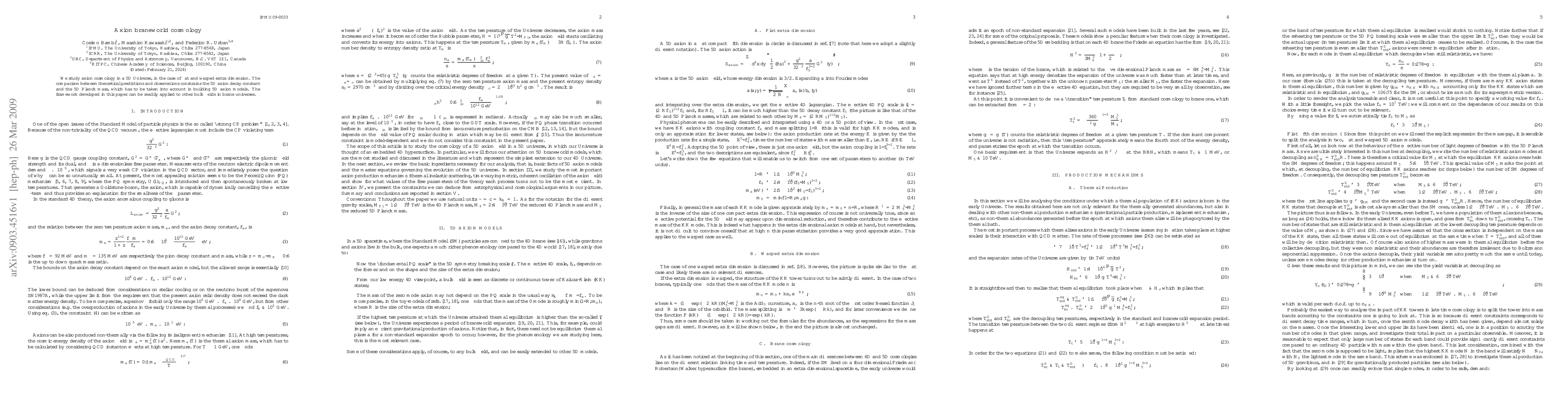 This paper explores axion cosmology in a 5D Universe, examining both flat and warped extra dimensions. It constrains the 5D axion decay constant and the 5D Planck mass through theoretical predictions and observations, providing a framework applicable to other bulk fields in brane universes.
