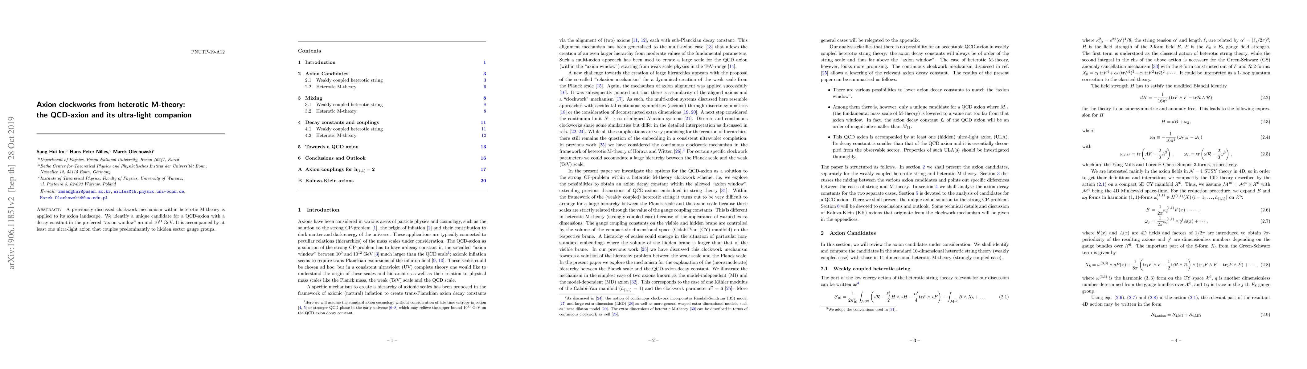 This paper applies the clockwork mechanism in heterotic M-theory to propose a QCD-axion with a decay constant around $10^{11}\,$GeV, alongside an ultra-light axion primarily coupling to hidden sector gauge groups. The study identifies a unique candidate for the QCD-axion within this theoretical framework.