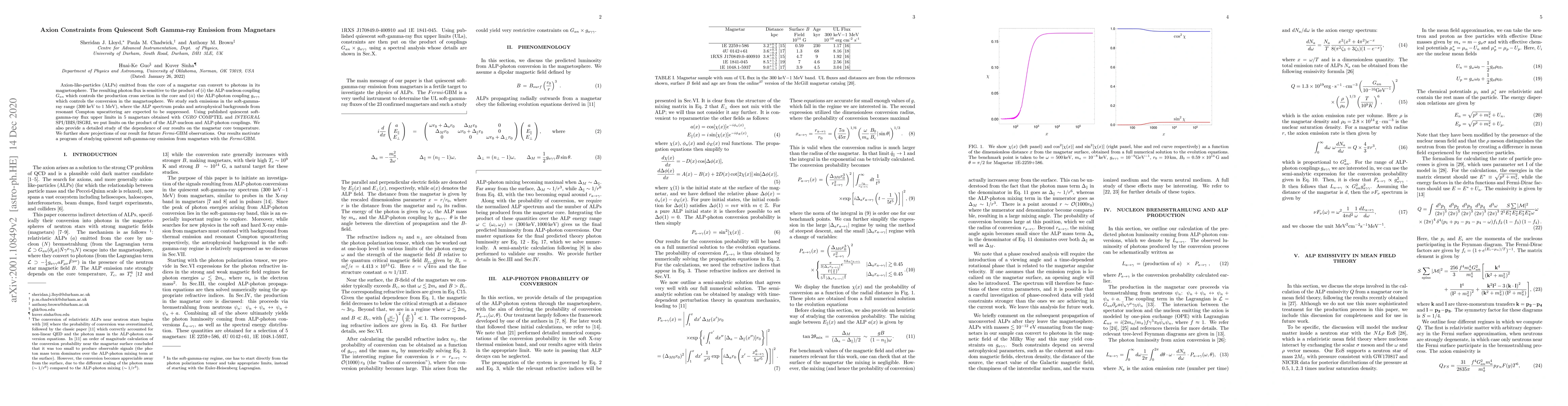 This paper constrains axion-like particles (ALPs) emitted from magnetars by analyzing quiescent soft gamma-ray emissions in the 300 keV to 1 MeV range, using upper limits from COMPTEL and INTEGRAL observations. The study provides limits on the ALP-nucleon and ALP-photon coupling products, and projects future constraints from Fermi-GBM observations.