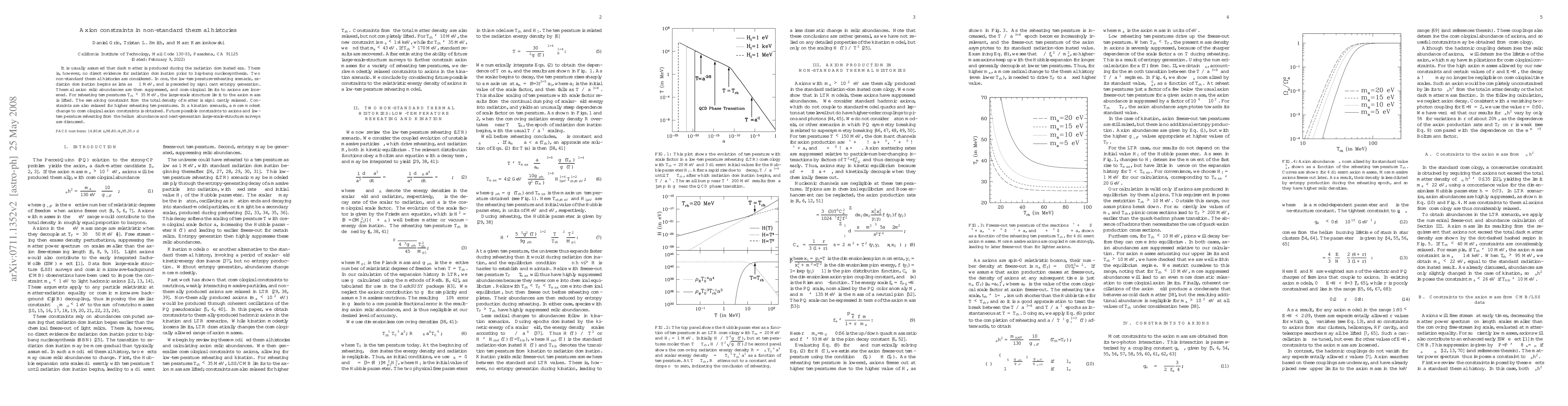 It is usually assumed that dark matter is produced during the radiation dominated era. There is, however, no direct evidence for radiation domination prior to big-bang nucleosynthesis. Two non-standard thermal histories are considered. In one, the low-temperature-reheating scenario, radiation domination begins as late as 1 MeV, and is preceded by significant entropy generation. Thermal axion relic abundances are then suppressed, and cosmological limits to axions are loosened. For reheating temperatures less than 35 MeV, the large-scale structure limit to the axion mass is lifted. The remaining constraint from the total density of matter is significantly relaxed. Constraints are also relaxed for higher reheating temperatures. In a kination scenario, a more modest change to cosmological axion constraints is obtained. Future possible constraints to axions and low-temperature reheating from the helium abundance and next-generation large-scale-structure surveys are discussed.