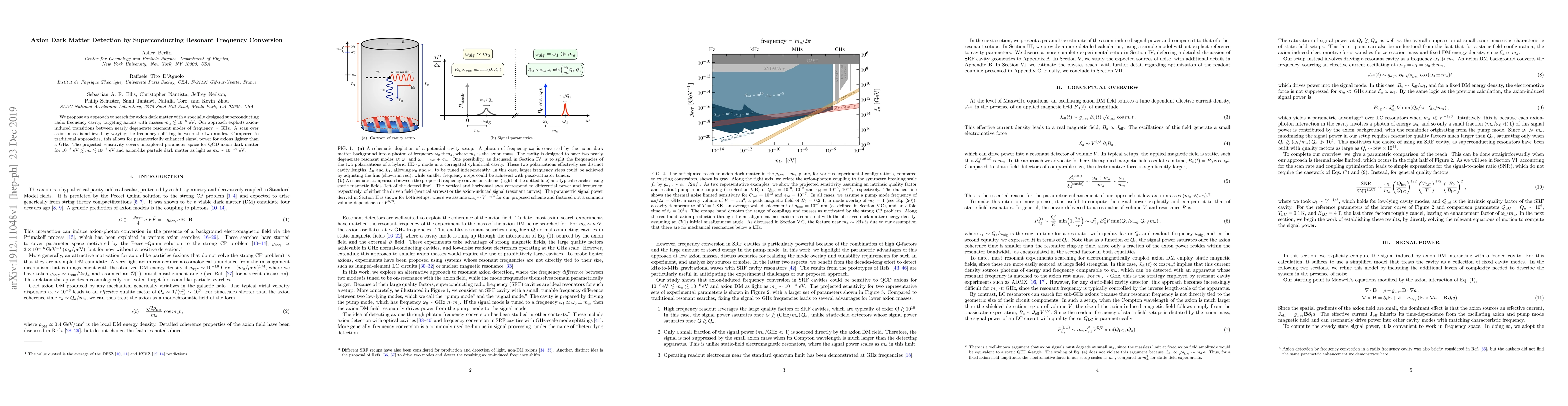We propose an approach to search for axion dark matter with a specially designed superconducting radio frequency cavity, targeting axions with masses $m_a \lesssim 10^{-6} \text{ eV}$. Our approach exploits axion-induced transitions between nearly degenerate resonant modes of frequency $\sim$ GHz. A scan over axion mass is achieved by varying the frequency splitting between the two modes. Compared to traditional approaches, this allows for parametrically enhanced signal power for axions lighter than a GHz. The projected sensitivity covers unexplored parameter space for QCD axion dark matter for $10^{-8} \text{ eV} \lesssim m_a \lesssim10^{-6} \text{ eV}$ and axion-like particle dark matter as light as $m_a \sim 10^{-14} \text{ eV}$.