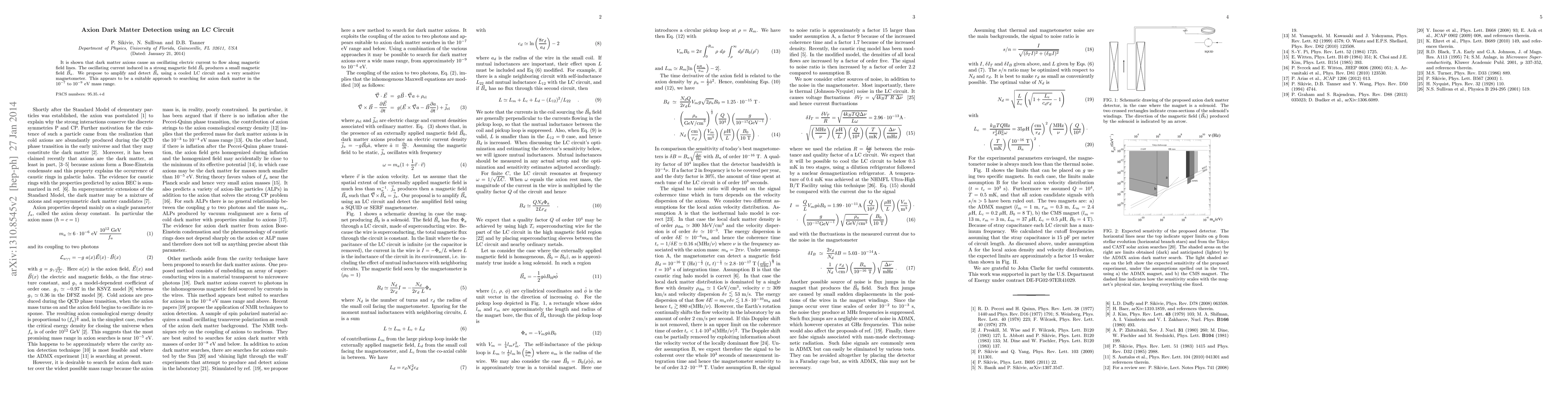 This paper proposes a method to detect axion dark matter by amplifying and measuring the small magnetic field $\vec{B}_a$ induced by oscillating currents caused by axions in a strong magnetic field $\vec{B}_0$, using a cooled LC circuit and a sensitive magnetometer. The approach is targeted for axions in the mass range of $10^{-7}$ to $10^{-9}$ eV.