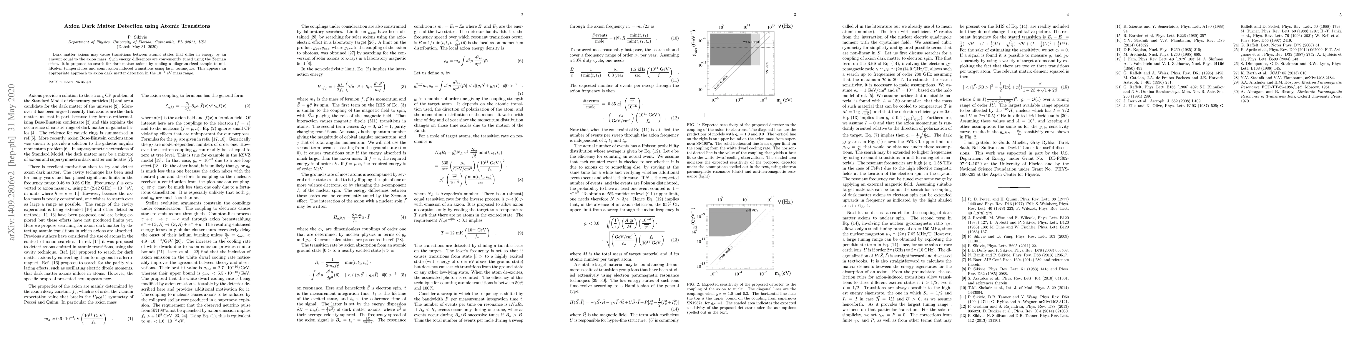 This paper proposes a method to detect axion dark matter by inducing transitions between atomic states via axion interactions, utilizing the Zeeman effect and laser techniques on a cooled, kilogram-sized sample. The approach targets axions in the $10^{-4}$ eV mass range.