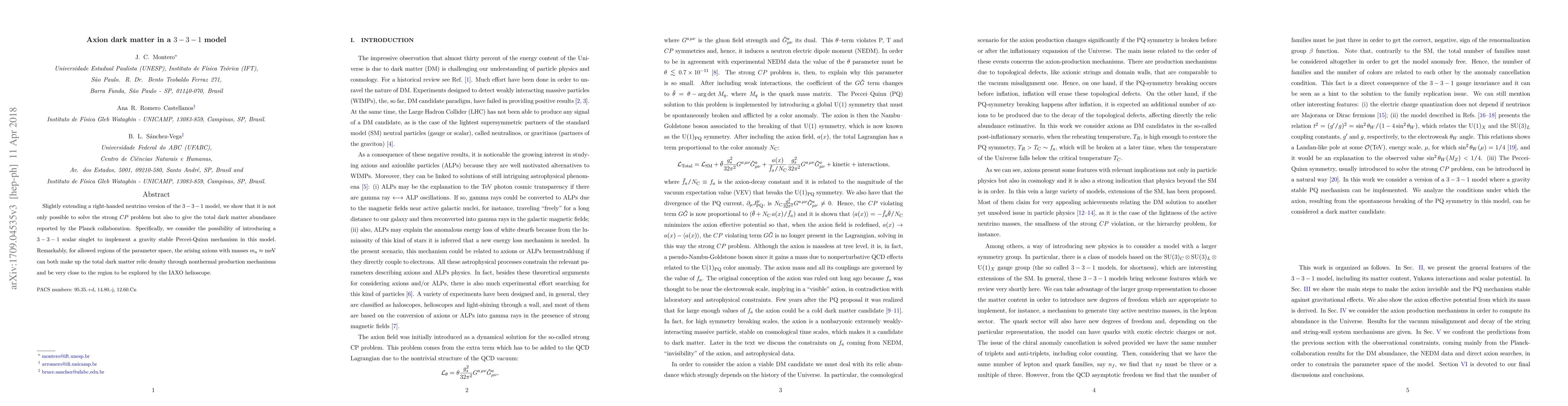 Slightly extending a right-handed neutrino version of the $3-3-1$ model, we show that it is not only possible to solve the strong CP problem but also to give the total dark matter abundance reported by the Planck collaboration. Specifically, we consider the possibility of introducing a $3-3-1$ scalar singlet to implement a gravity stable Peccei-Quinn mechanism in this model. Remarkably, for allowed regions of the parameter space, the arising axions with masses $m_a\approx$ meV can both make up the total dark matter relic density through non-thermal production mechanisms and be very close to the region to be explored by the IAXO helioscope.