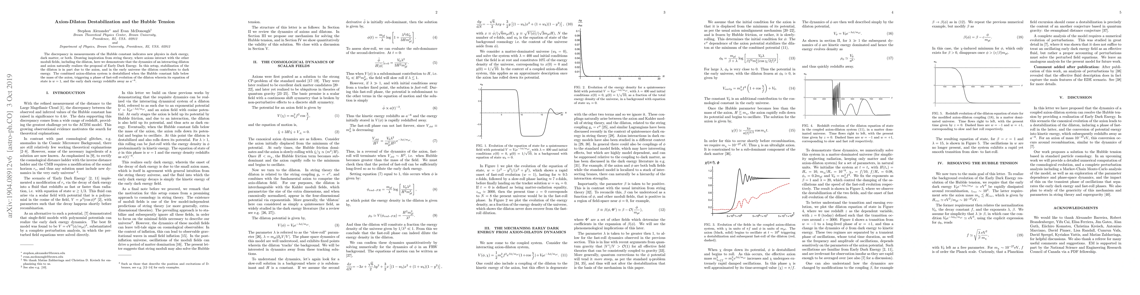 The discrepancy in measurements of the Hubble constant indicates new physics in dark energy, dark matter, or both. Drawing inspiration from string theory, where axions interact with the other moduli fields, including the dilaton, here we demonstrate that the dynamics of an interacting dilaton and axion naturally realizes the proposal of Early Dark Energy. In this setup, stabilization of the the dilaton is in part due to the axion, and in the early universe the dilaton contributes to dark energy. The combined axion-dilaton system is destabilized when the Hubble constant falls below the mass of the axion, triggering a phase of fast-roll evolution of the dilaton wherein its equation of state is $w=1$, and the early dark energy redshifts away as $a^{-6}$.