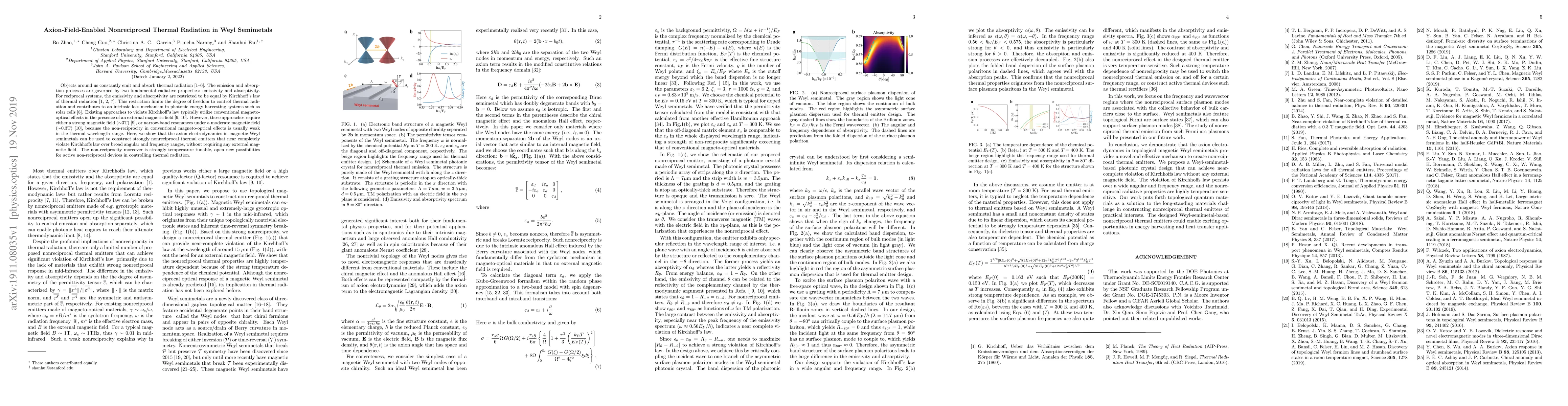 This paper demonstrates that axion electrodynamics in magnetic Weyl semimetals can create strongly nonreciprocal thermal emitters that significantly violate Kirchhoff's law over broad ranges, without the need for external magnetic fields, offering new avenues for temperature-tunable, active control over thermal radiation.