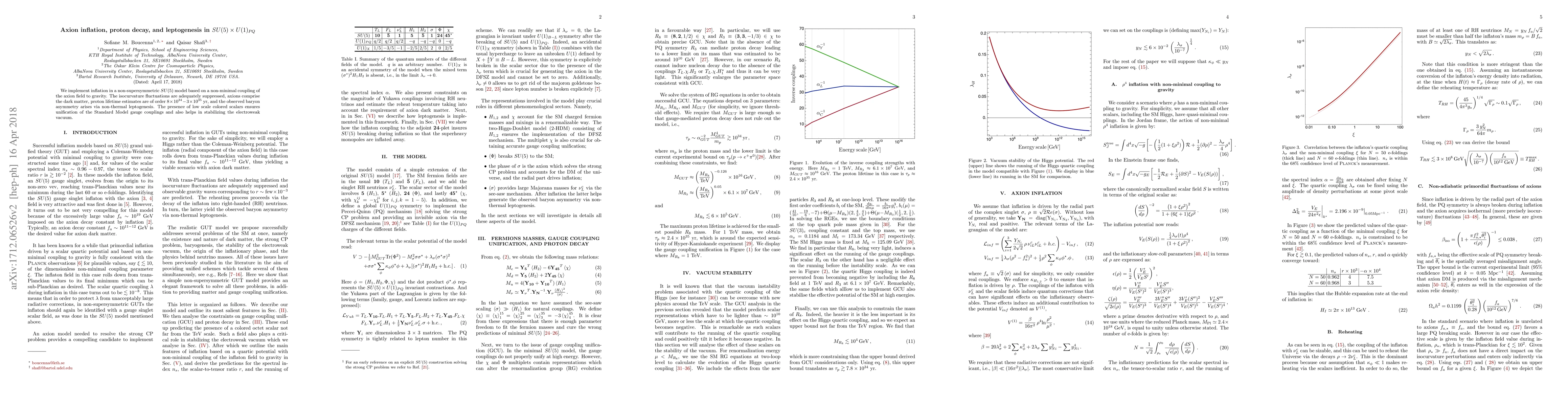 This SU(5) model with axion inflation and PQ symmetry predicts a dark matter composition of axions, short proton lifetimes and baryon asymmetry via leptogenesis.