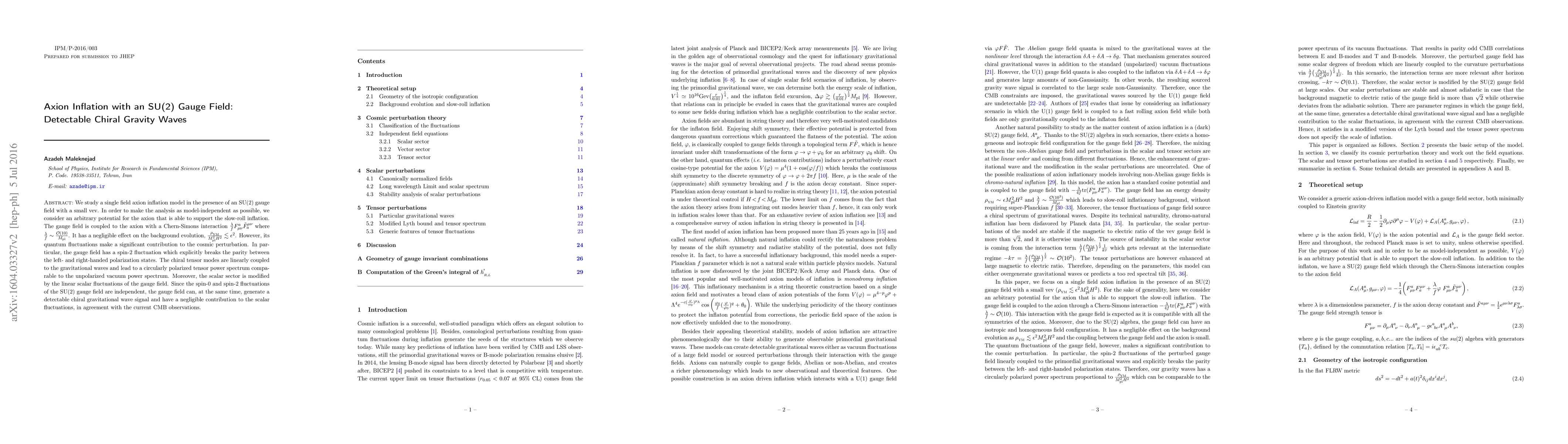 We study a single field axion inflation model in the presence of an SU(2) gauge field with a small vev. In order to make the analysis as model-independent as possible, we consider an arbitrary potential for the axion that is able to support the slow-roll inflation. The gauge field is coupled to the axion with a Chern-Simons interaction $\frac{\lambda}{f}F_{\mu\nu}^a\tilde F_a^{\mu\nu}$ where $\frac{\lambda}{f}\sim\mathcal{O}(10)$. It has a negligible effect on the background evolution, $\frac{\rho_{_{\rm YM}}}{M_{\rm Pl}^2H^2}\lesssim\epsilon^2$. However, its quantum fluctuations make a significant contribution to the cosmic perturbation. In particular, the gauge field has a spin-2 fluctuation which explicitly breaks the parity between the left- and right-handed polarization states. The chiral tensor modes are linearly coupled to the gravitational waves and lead to a circularly polarized tensor power spectrum comparable to the unpolarized vacuum power spectrum. Moreover, the scalar sector is modified by the linear scalar fluctuations of the gauge field. Since the spin-0 and spin-2 fluctuations of the SU(2) gauge field are independent, the gauge field can, at the same time, generate a detectable chiral gravitational wave signal and have a negligible contribution to the scalar fluctuations, in agreement with the current CMB observations.