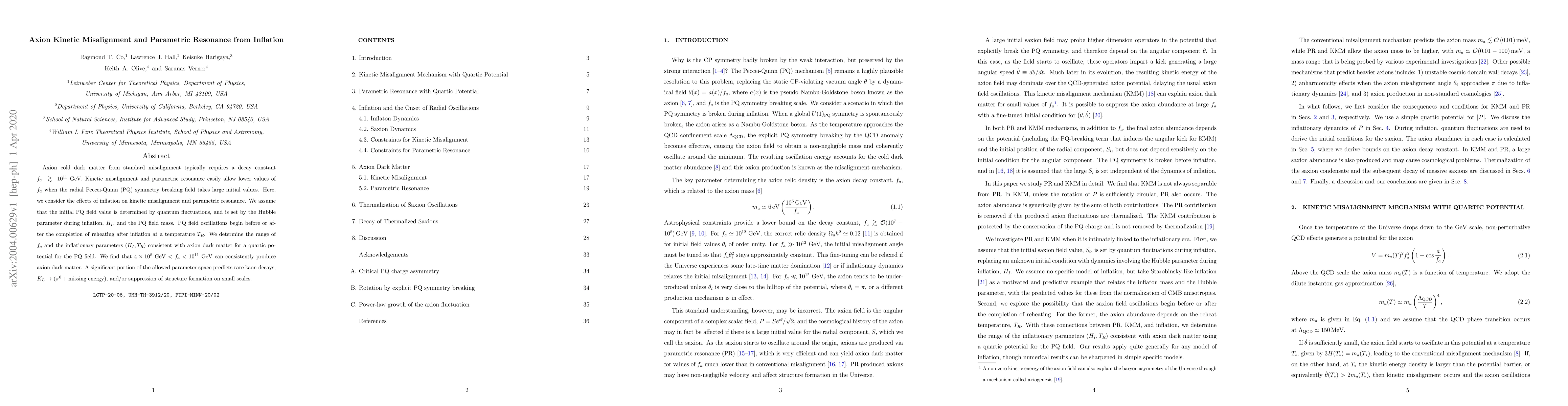 This paper explores how inflation influences axion kinetic misalignment and parametric resonance, allowing for lower decay constants $f_a$ to produce axion cold dark matter. It finds that $4\times 10^8$ GeV $< f_a < 10^{11}$ GeV can be consistent with axion dark matter, while also predicting rare kaon decays and suppression of small-scale structure formation.