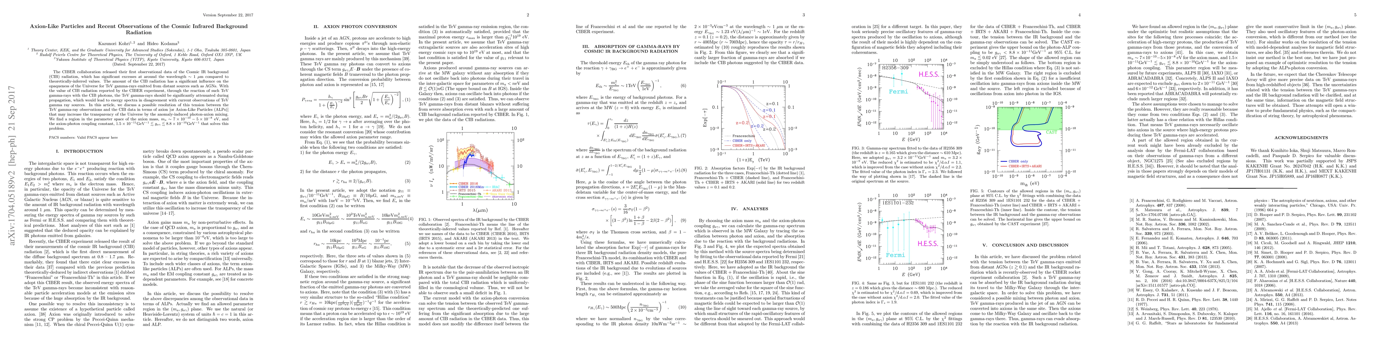 The CIBER collaboration released their first observational data of the Cosmic IR background (CIB) radiation, which has significant excesses at around the wavelength $\sim$ 1 $\mu$m compared to theoretically-inferred values. The amount of the CIB radiation has a significant influence on the opaqueness of the Universe for TeV gamma-rays emitted from distant sources such as AGNs. With the value of CIB radiation reported by the CIBER experiment, through the reaction of such TeV gamma-rays with the CIB photons, the TeV gamma-rays should be significantly attenuated during propagation, which would lead to energy spectra in disagreement with current observations of TeV gamma ray sources. In this article, we discuss a possible resolution of this tension between the TeV gamma-ray observations and the CIB data in terms of axion [or Axion-Like Particles (ALPs)] that may increase the transparency of the Universe by the anomaly-induced photon-axion mixing. We find a region in the parameter space of the axion mass, $m_a \sim 7 \times 10^{-10} - 5 \times 10^{-8}$eV, and the axion-photon coupling constant, $1.2 \times 10^{-11} {\rm GeV}^{-1} \lesssim g_{a\gamma} \lesssim 8.8 \times 10^{-10} {\rm GeV}^{-1}$ that solves this problem.