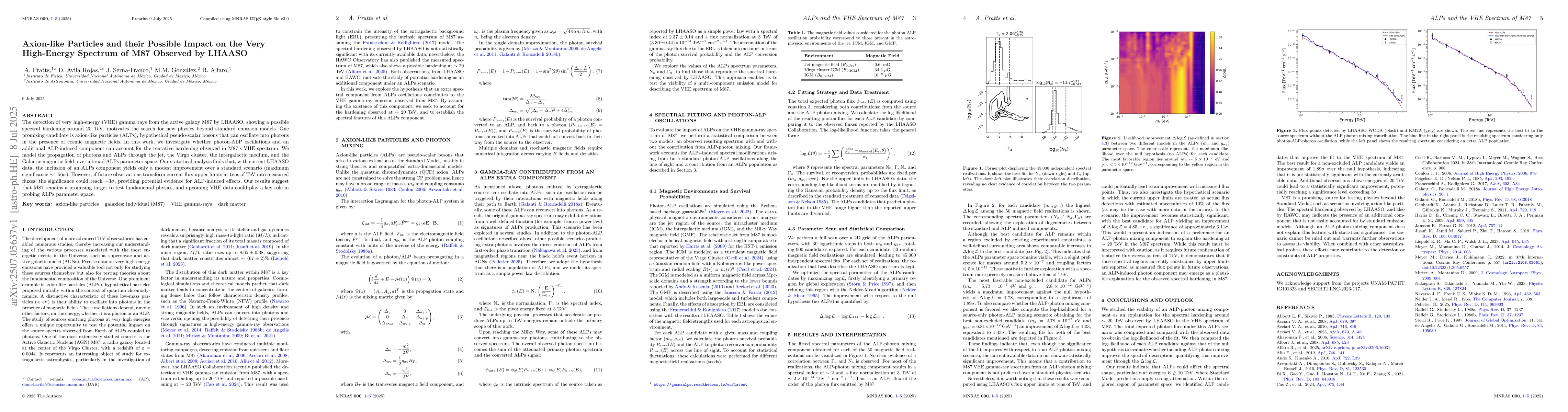 The detection of very high-energy (VHE) gamma rays from the active galaxy M87 by LHAASO, showing a possible spectral hardening around $20$ TeV, motivates the search for new physics beyond standard emission models. One promising candidate is axion-like particles (ALPs), hypothetical pseudo-scalar bosons that can oscillate into photons in the presence of cosmic magnetic fields. In this work, we investigate whether photon-ALP oscillations and an additional ALP-induced component can account for the tentative hardening observed in M87's VHE spectrum. We model the propagation of photons and ALPs through the jet, the Virgo cluster, the intergalactic medium, and the Galactic magnetic field, over a broad ALPs parameter space. Our statistical analysis finds that, with current LHAASO data, the inclusion of an ALPs component yields only a modest improvement over a standard scenario (maximum significance $\sim$1.56$\sigma$). However, if future observations transform current flux upper limits at tens of TeV into measured fluxes, the significance could reach $\sim$3$\sigma$, providing potential evidence for ALP-induced effects. Our results suggest that M87 remains a promising target to test fundamental physics, and upcoming VHE data could play a key role in probing ALPs parameter space.