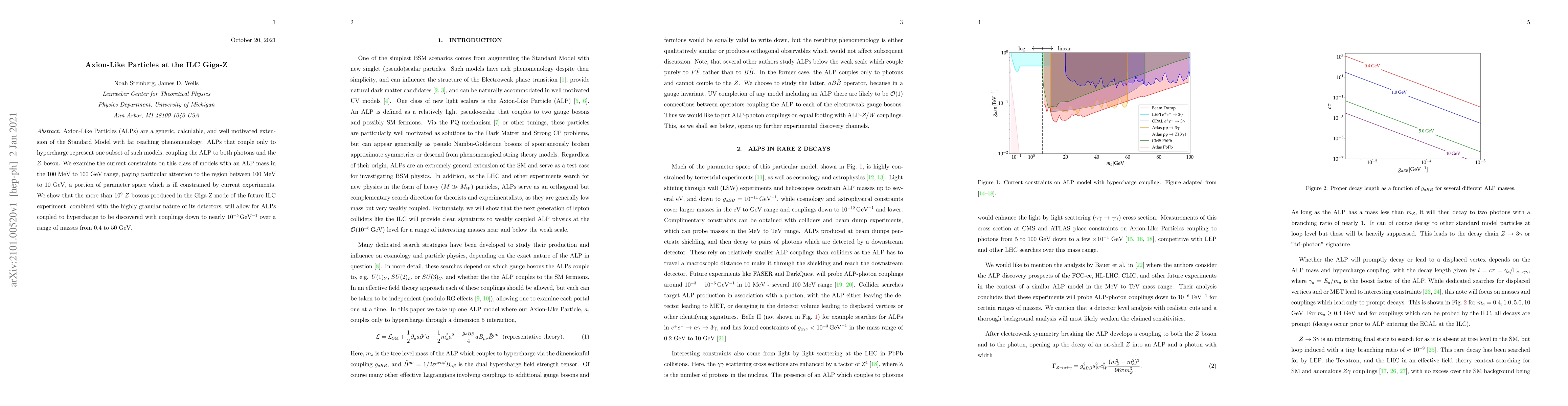 Axion-Like Particles (ALPs) are a generic, calculable, and well motivated extension of the Standard Model with far reaching phenomenology. ALPs that couple only to hypercharge represent one subset of such models, coupling the ALP to both photons and the $Z$ boson. We examine the current constraints on this class of models with an ALP mass in the 100 MeV to 100 GeV range, paying particular attention to the region between 100 MeV to 10 GeV, a portion of parameter space which is ill constrained by current experiments. We show that the more than $10^{9}$ $Z$ bosons produced in the Giga-Z mode of the future ILC experiment, combined with the highly granular nature of its detectors, will allow for ALPs coupled to hypercharge to be discovered with couplings down to nearly $10^{-5}\,\rm{GeV^{-1}}$ over a range of masses from 0.4 to 50 GeV.
