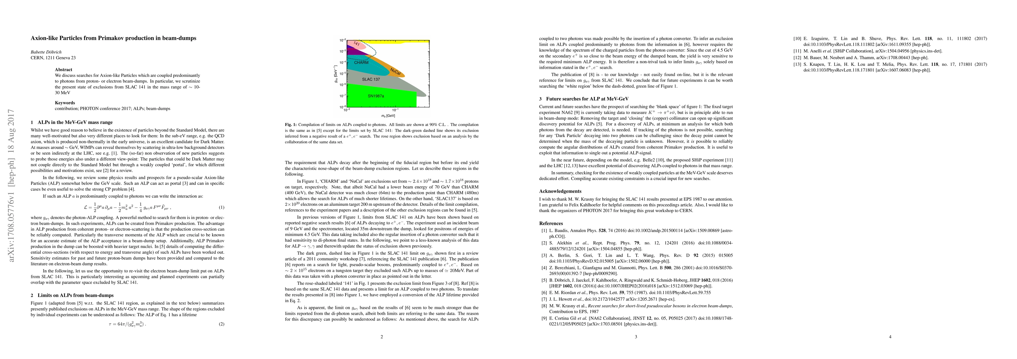 We discuss searches for Axion-like Particles which are coupled predominantly to photons from proton- or electron beam-dumps. In particular, we scrutinize the present state of exclusions from SLAC 141 in the mass range of $\sim$ 10-30 MeV