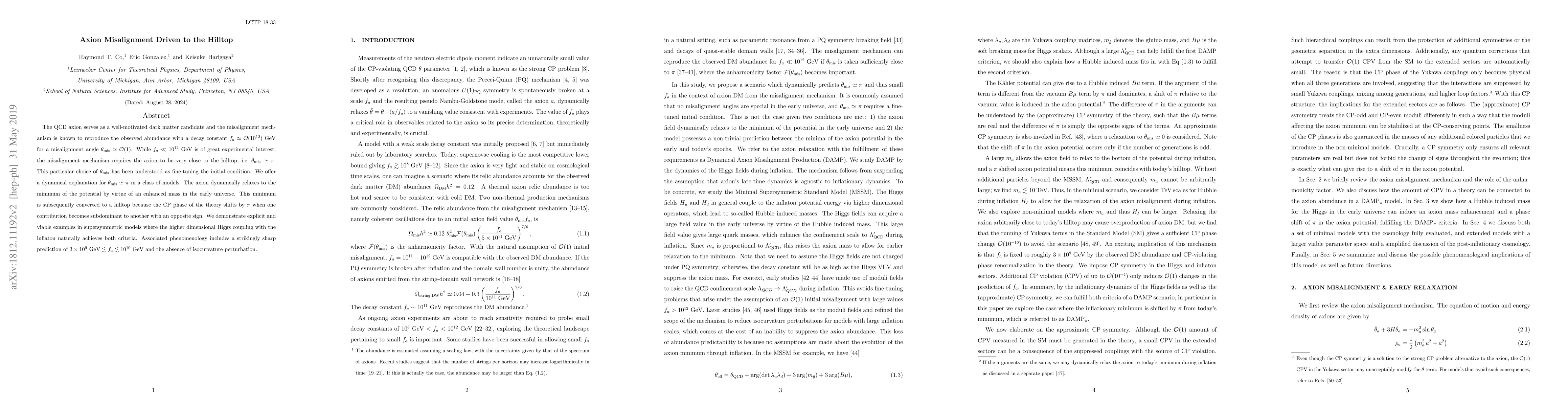 This paper proposes a dynamical explanation for the QCD axion's misalignment near the hilltop, addressing the fine-tuning issue by showing how the axion naturally relaxes to a minimum that becomes a hilltop due to a CP phase shift. It provides viable supersymmetric models predicting $f_a$ in the range $3 \times 10^9$ GeV to $10^{10}$ GeV with no isocurvature perturbation.