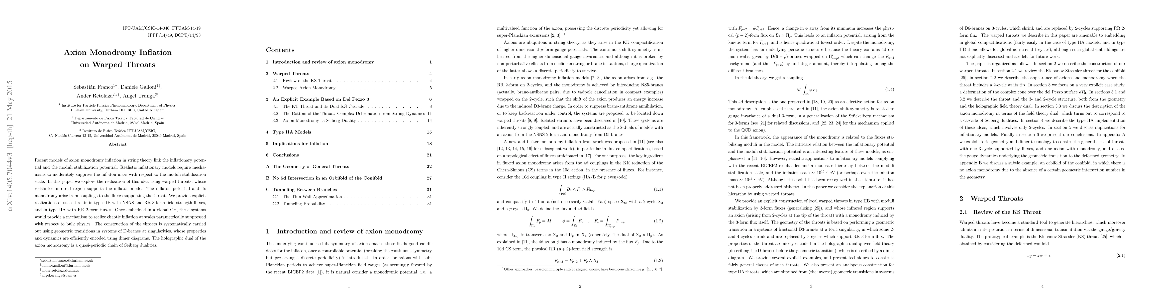 This paper explores axion monodromy inflation in string theory using warped throats to moderate the inflaton mass, providing explicit models in type IIB and IIA with flux stabilization. The inflaton potential arises from throat couplings to fluxes, enabling chaotic inflation at scales suppressed relative to bulk physics.