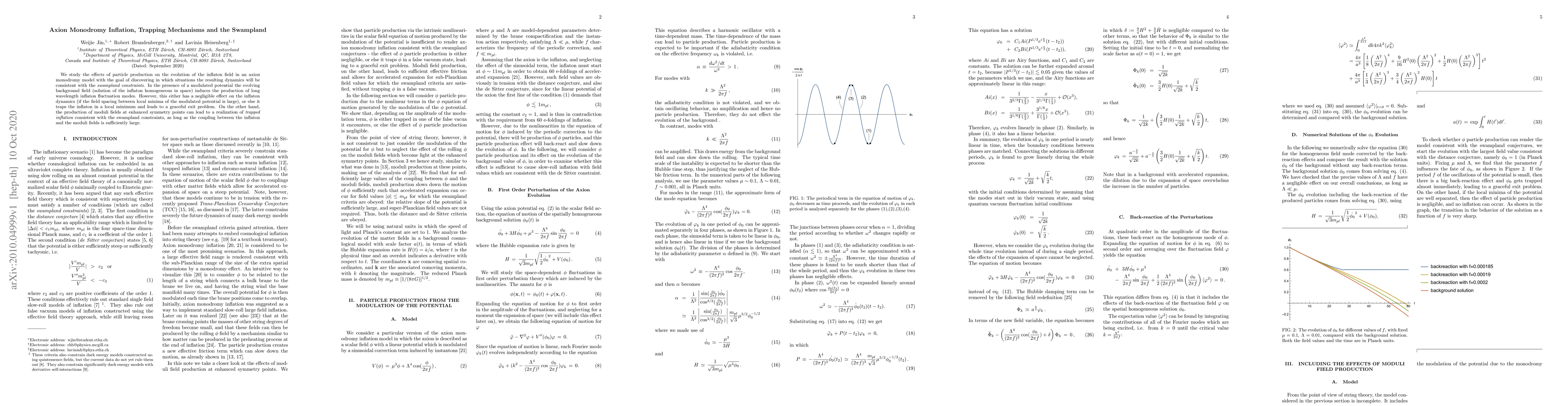 We study the effects of particle production on the evolution of the inflaton field in an axion monodromy model with the goal of discovering in which situations the resulting dynamics will be consistent with the {\it swampland constraints}. In the presence of a modulated potential the evolving background field (solution of the inflaton homogeneous in space) induces the production of long wavelength inflaton fluctuation modes. However, this either has a negligible effect on the inflaton dynamics (if the field spacing between local minima of the modulated potential is large), or else it traps the inflaton in a local minimum and leads to a graceful exit problem. On the other hand, the production of moduli fields at enhanced symmetry points can lead to a realization of {\it trapped inflation} consistent with the swampland constraints, as long as the coupling between the inflaton and the moduli fields is sufficiently large.