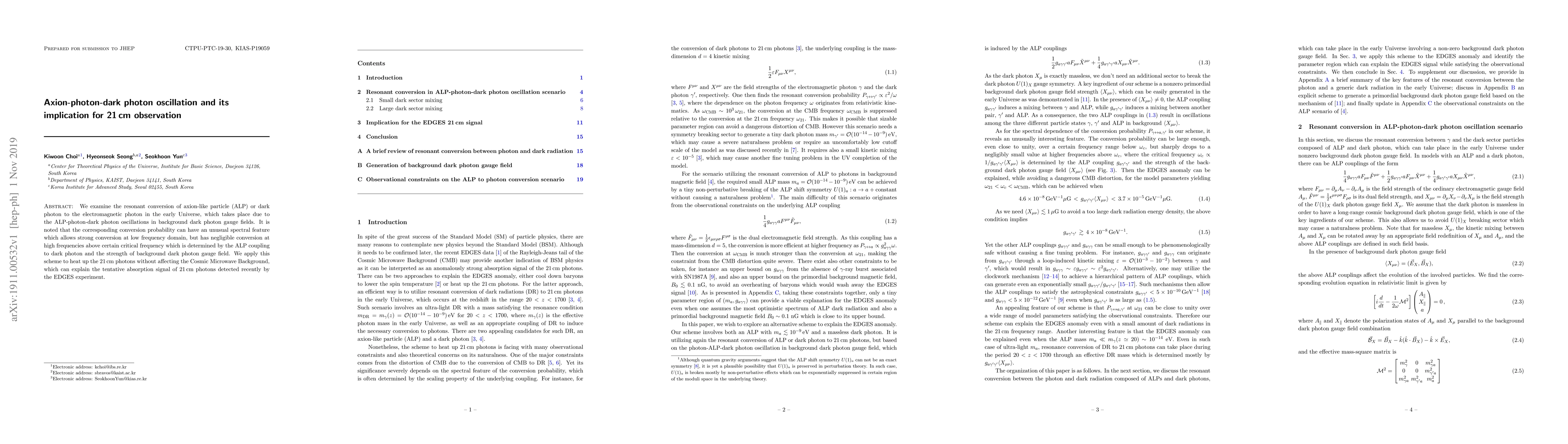 We examine the resonant conversion of axion-like particle (ALP) or dark photon to the electromagnetic photon in the early Universe, which takes place due to the ALP-photon-dark photon oscillations in background dark photon gauge fields. It is noted that the corresponding conversion probability can have an unusual spectral feature which allows strong conversion at low frequency domain, but has negligible conversion at high frequencies above certain critical frequency which is determined by the ALP coupling to dark photon and the strength of background dark photon gauge field. We apply this scheme to heat up the 21 cm photons without affecting the Cosmic Microwave Background, which can explain the tentative absorption signal of 21 cm photons detected recently by the EDGES experiment.