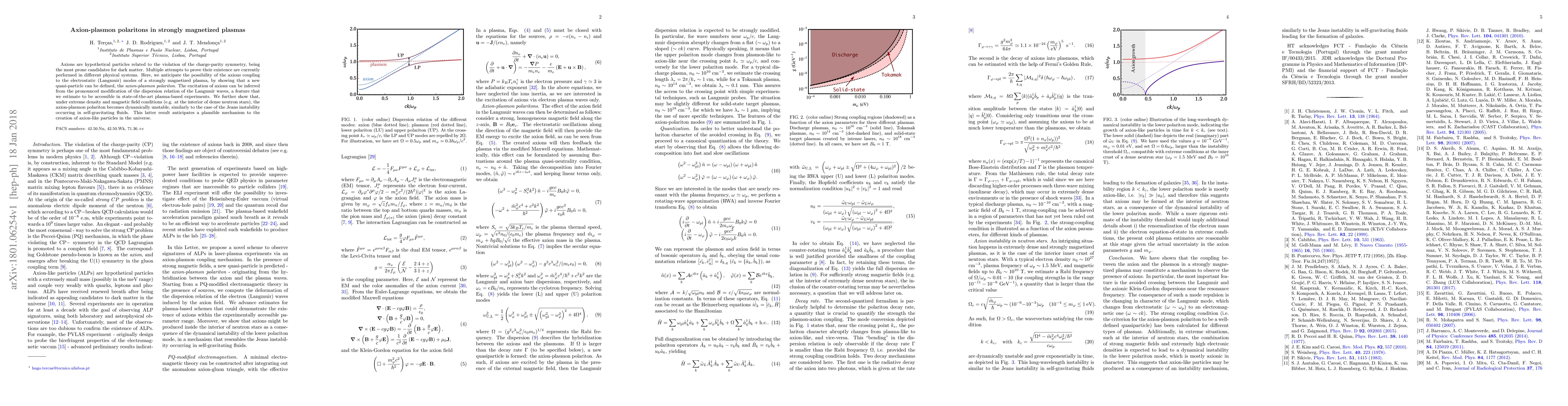This research explores the coupling of hypothetical axion particles to the electrostatic modes in strongly magnetized plasmas, defining a new quasi-particle called the axion-plasmon polariton. It suggests that state-of-the-art plasma experiments could detect these particles through changes in the dispersion relation of Langmuir waves, potentially offering a mechanism for axion creation in extreme astrophysical environments like neutron stars.