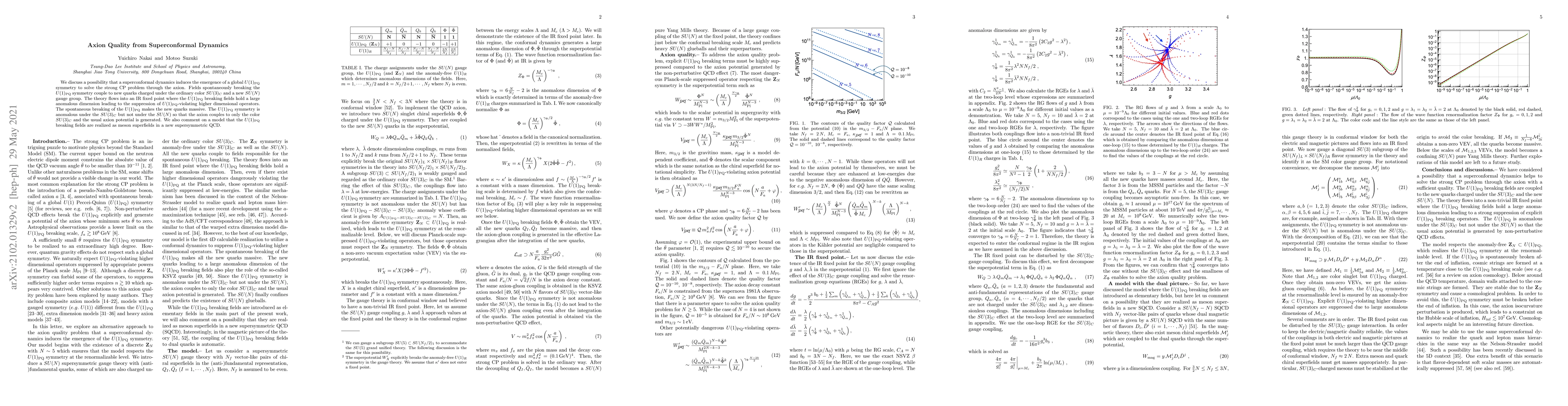 Researchers propose a new mechanism for axion emergence, suggesting that superconformal dynamics induces a global U(1) symmetry to solve the strong CP problem, resulting in massive quarks and an axion coupling only to color SU(3)_C.